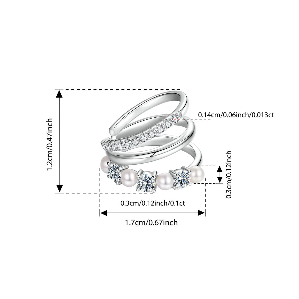 WOSTU Multi Layer Natural Pearl Moissanite Ear Cuff For Women, 925 Sterling Silver Lab Diamond Engagement Jewelry Birthday Gift