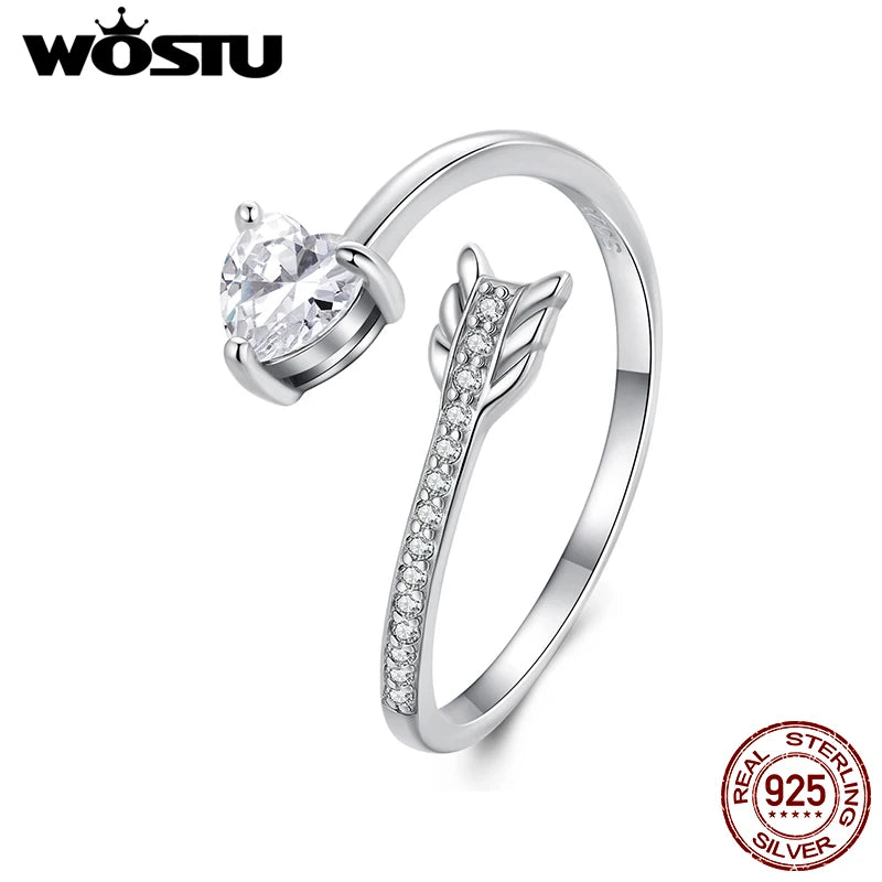 WOSTU Real 925 Sterling Silver Arrow Heart Open Ring Wedding Party Gift AAA Zircon Adjustable Rings Girl Lolvey Jewelry CTR666-E