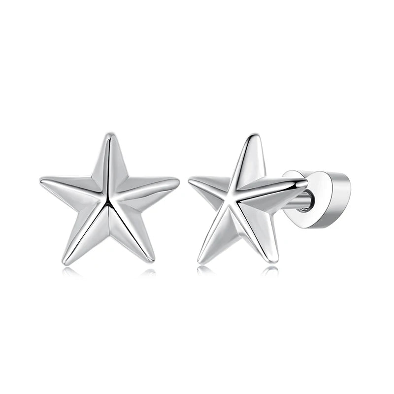 WOSTU Solid 925 Sterling Silver Star Stud Earrings For Women, s925 European Simple Geometric Ear Studs Original Jewelry Gift