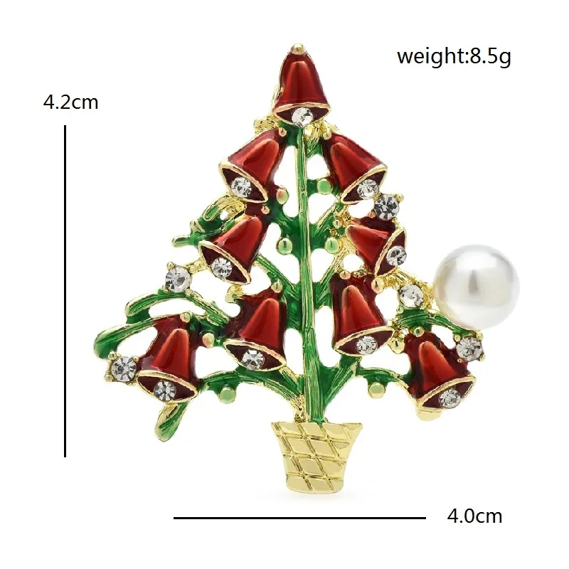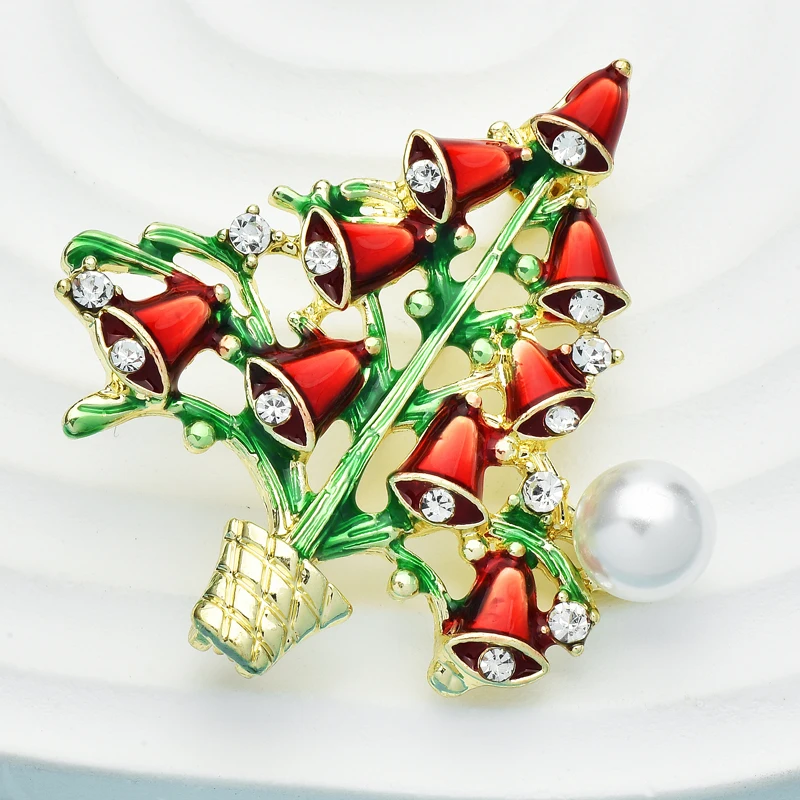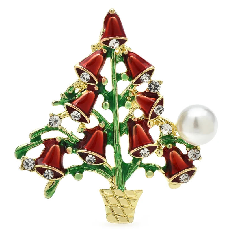 Wuli&baby Happy Bells Christmas Tree Brooches For Women Men Enamel Plants New Year Party Brooch Pins Gifts