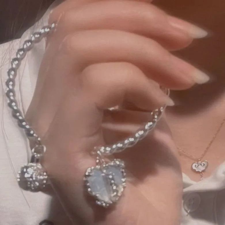 Y2K Zircon Ins Bracelets for Women Korean Fashion Sweet Girls Sparkling Hollow Heart Delicate Chain Bracelet Party Jewelry Gifts