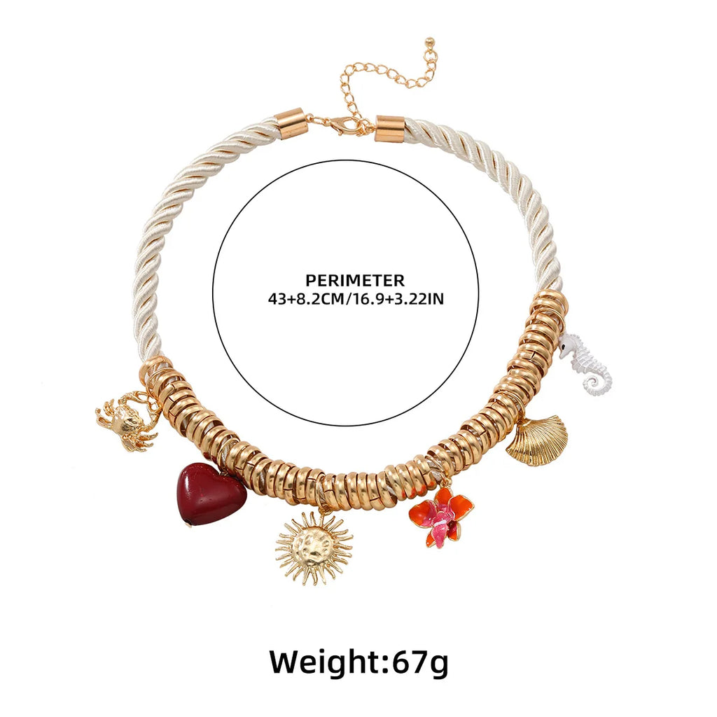 ZAA Crab Heart Flower Shell Seahorse Multi Layer Choker Necklace