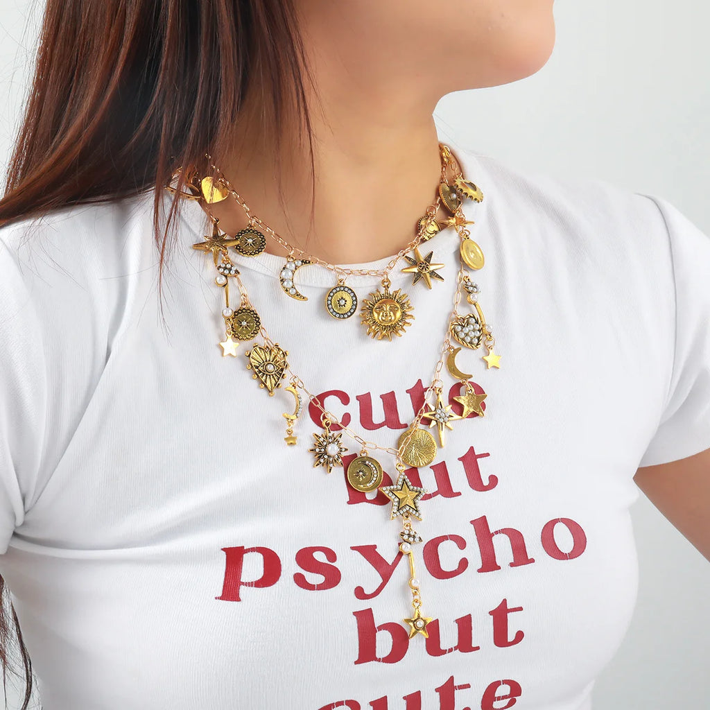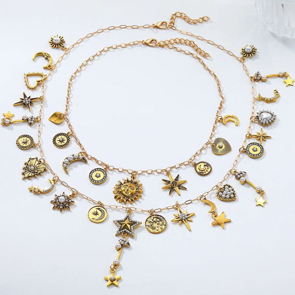 ZAA Exaggerated Beach Shell Sun Star Moon Heart Necklace