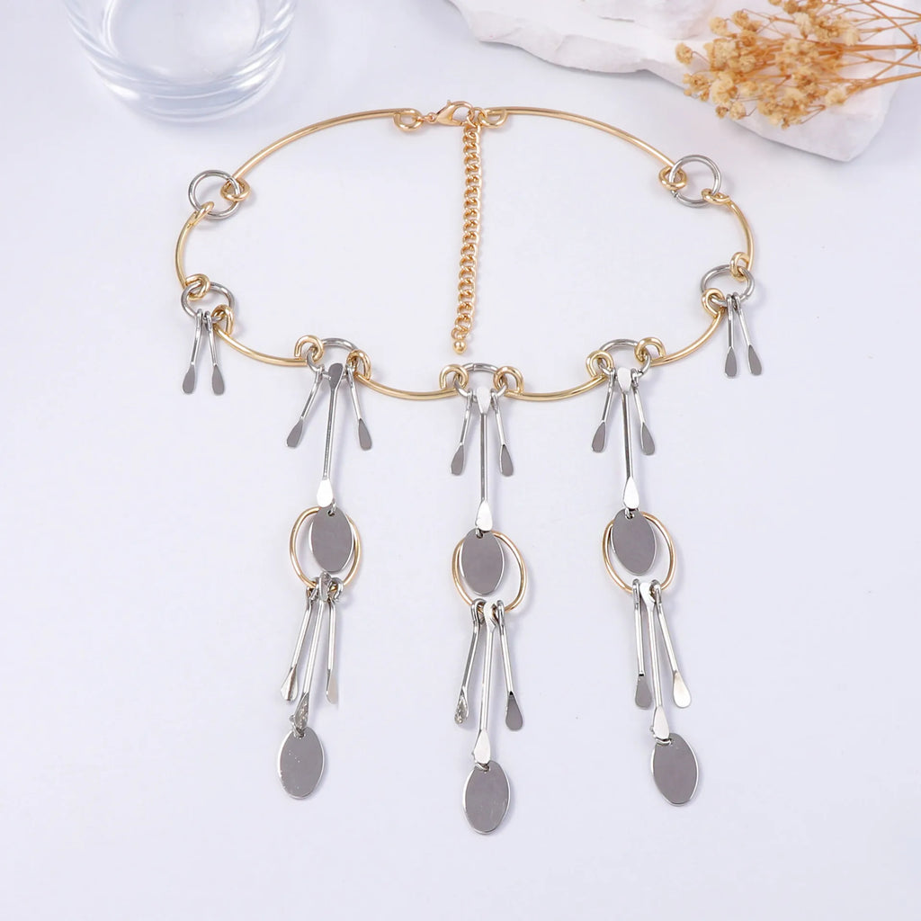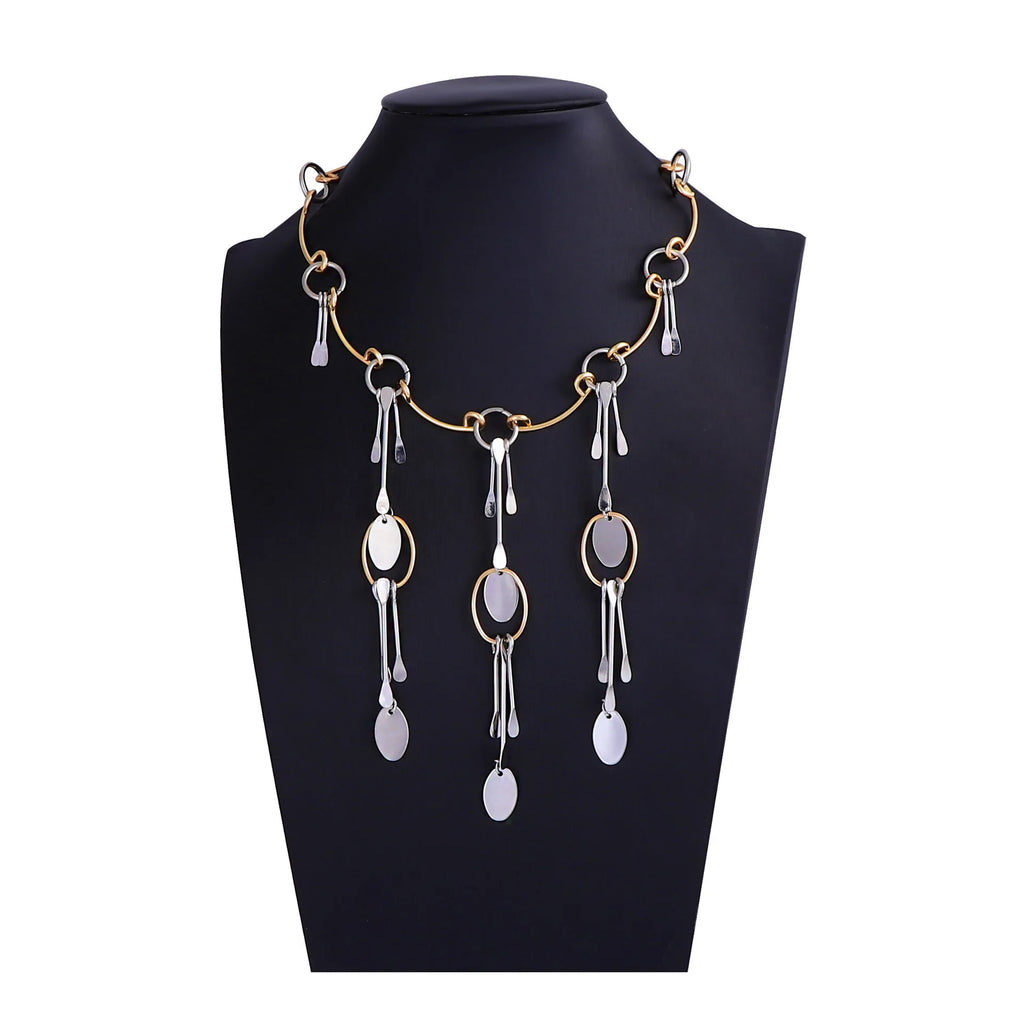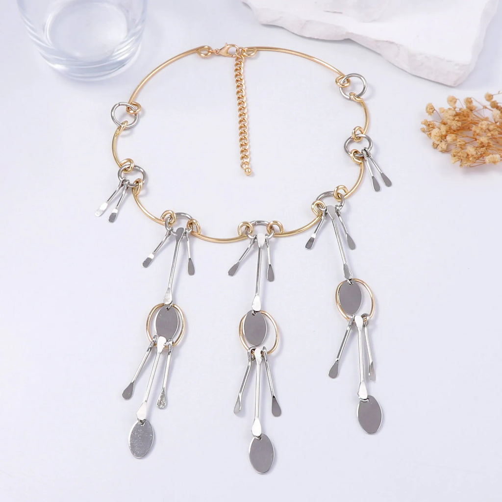 ZAA Metal Geometric Splicing Pendant Necklace