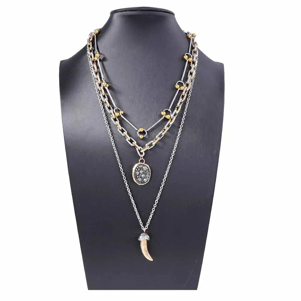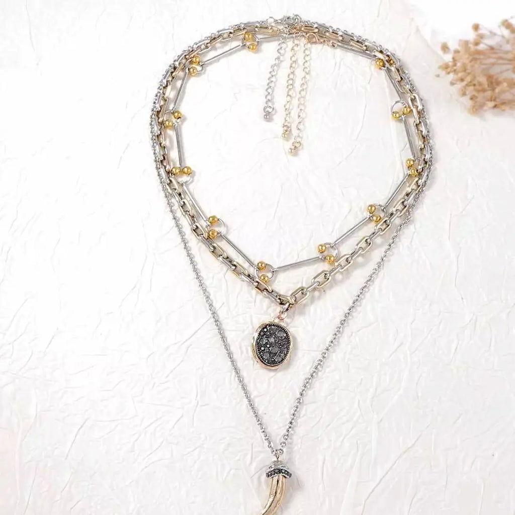 ZAA Unique Alloy Animal Horn Three Piece Pendant Necklace