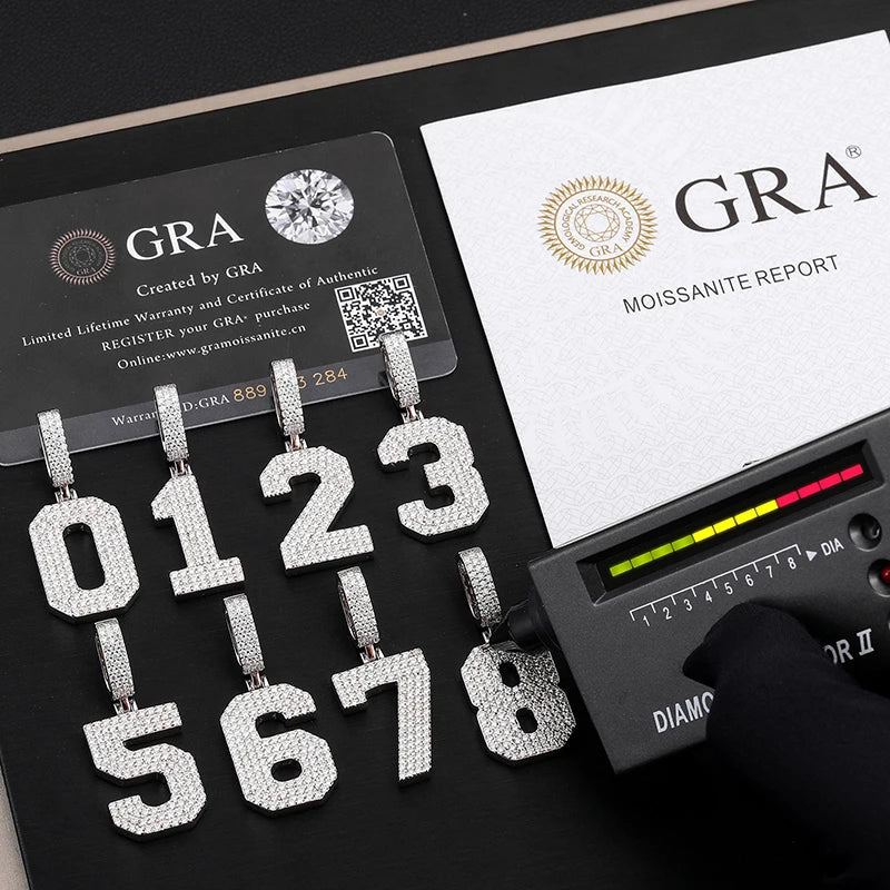 0-9 Lucky Numbers Moissanite Pendants Necklaces For Women 925 Silver Pendants Men Hip Hop Jewelry Fashion Birthday Gifts