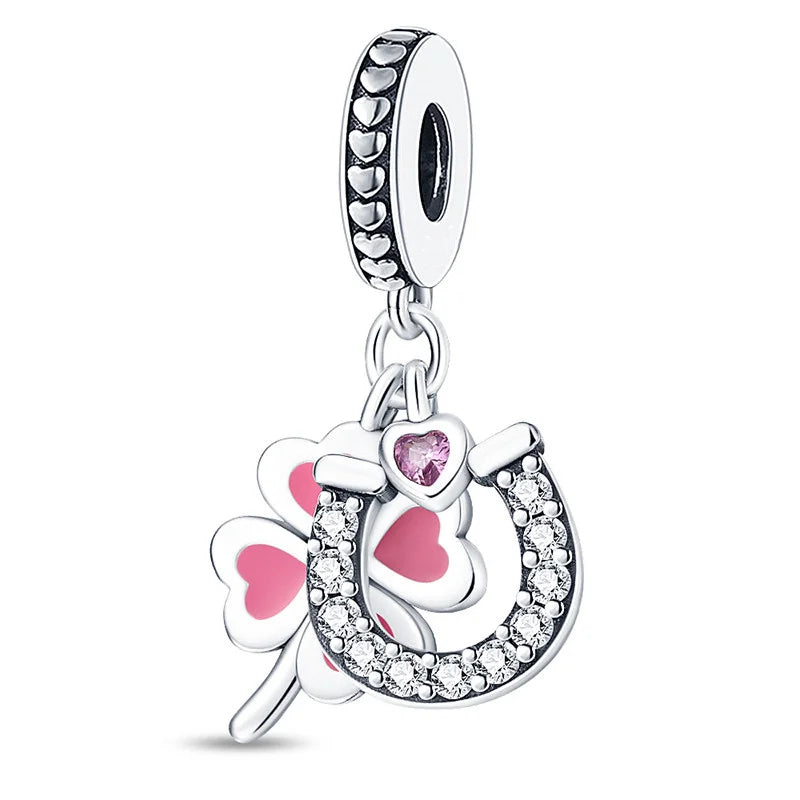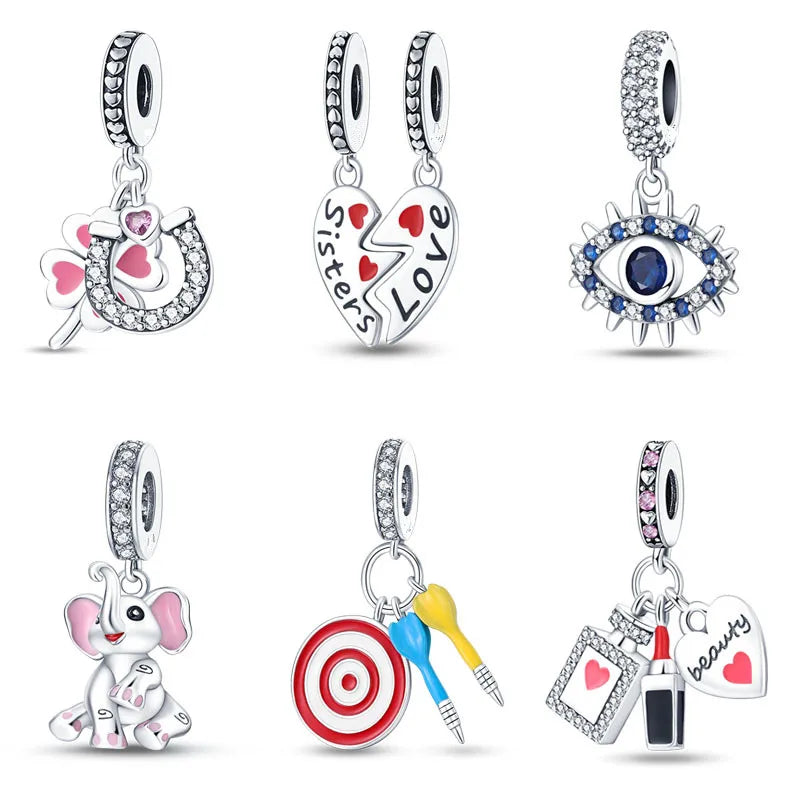 1 breloque argentée compatible avec les bracelets et colliers originaux de 3 mm : pendentif cœur, trèfle et œil protecteur, création de bijoux pour femme.