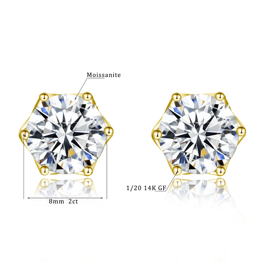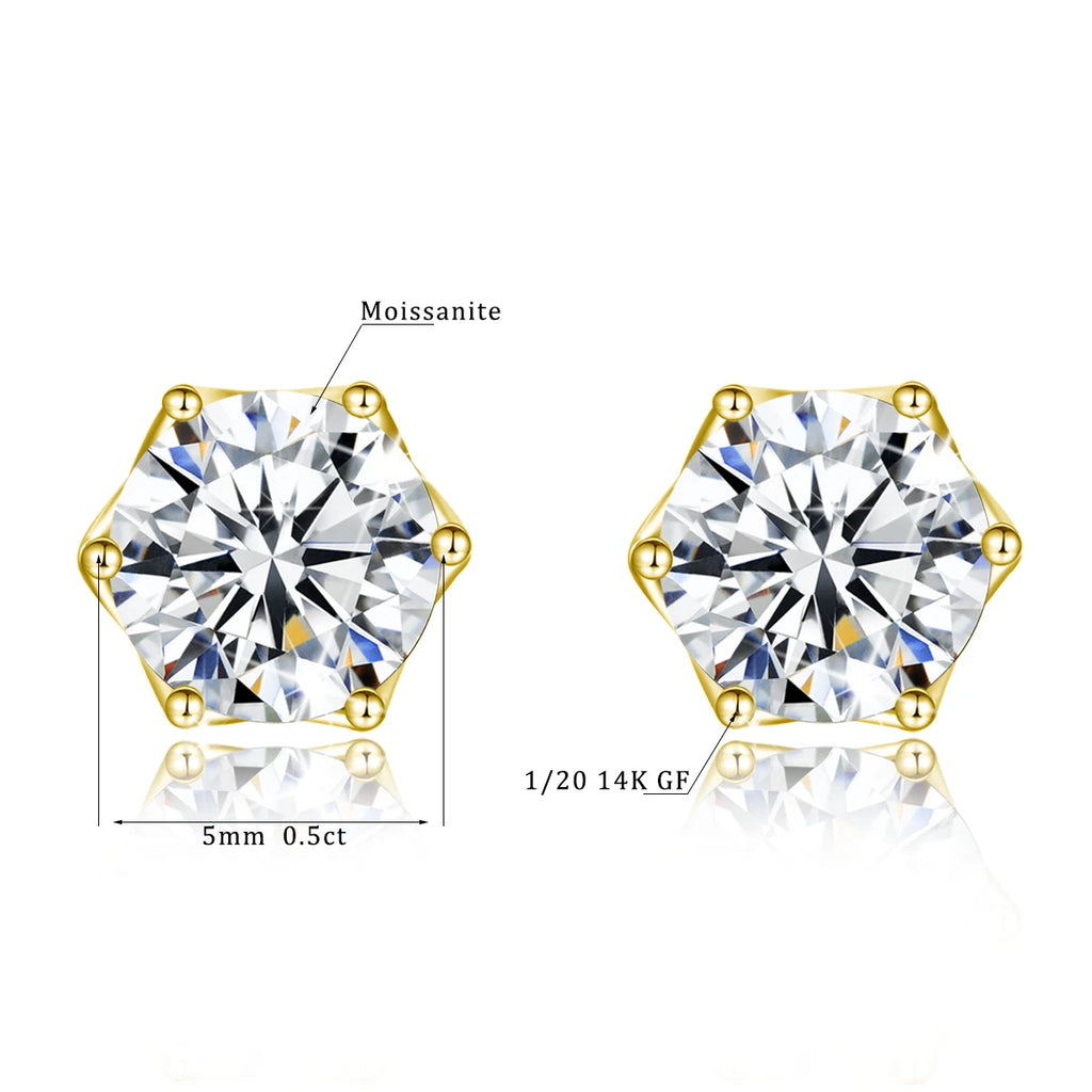 14K Gold Filled Moissanite Ear Stud Piercing Anti-allergy AU585 K Gold Push-Back Stud Earrings for Women Birthday New Year Gift