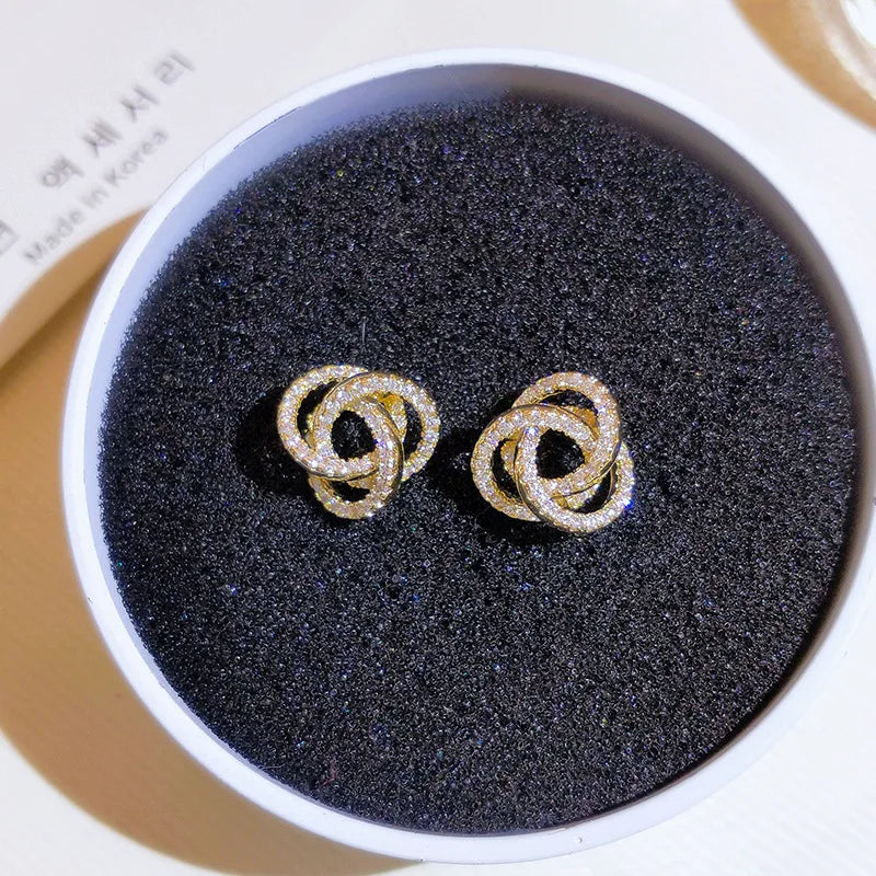 18k Gold Real Gold Woman Stud Earrings Unusual Earings Trend Piercing Small Crystal Vintage Ear Cuffs for Party Women's Jewelry