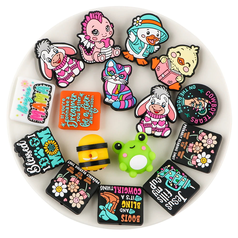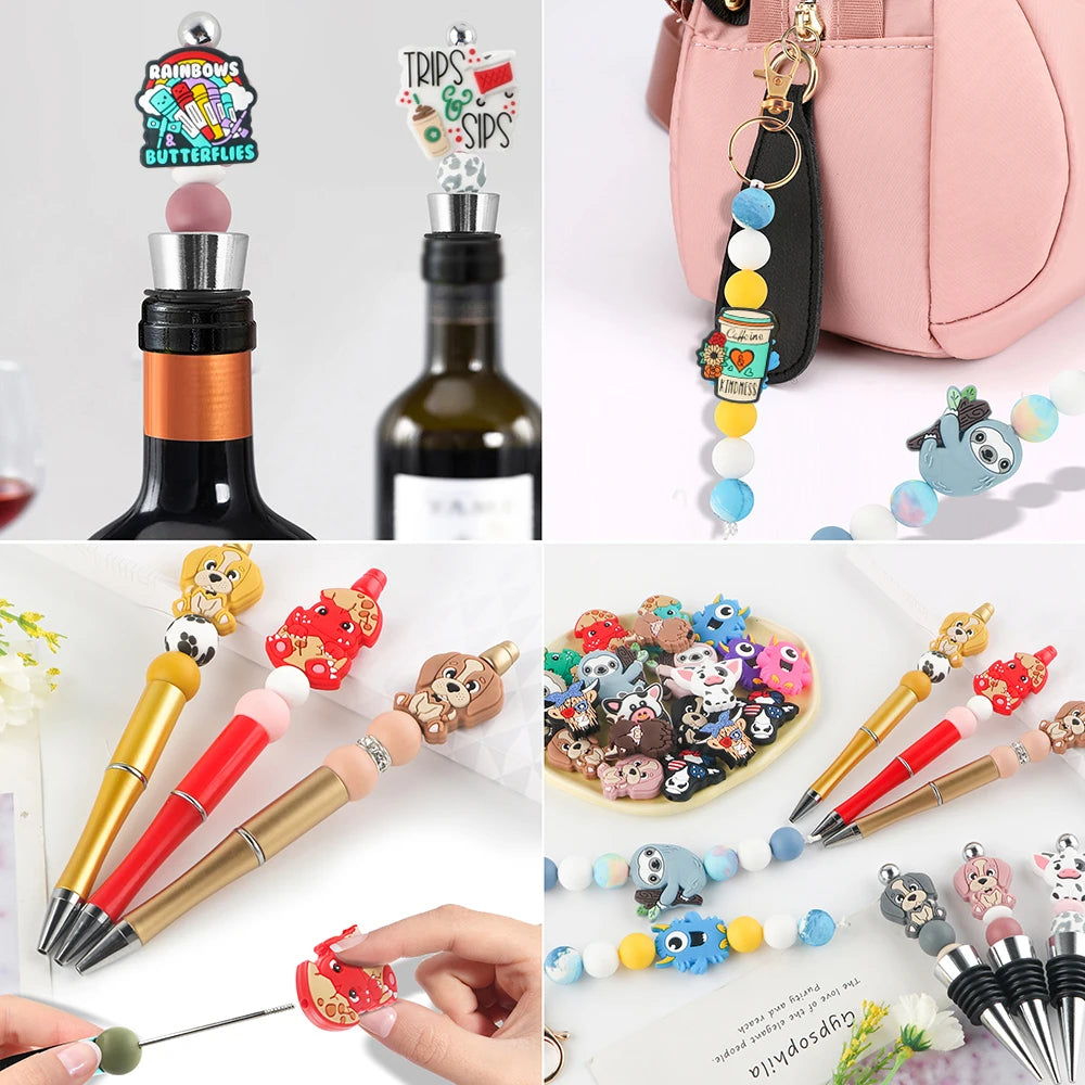 Lot de 5 ou 10 perles en silicone, motifs animaux mignons, pour la fabrication de bijoux, porte-clés, bracelets, accessoires