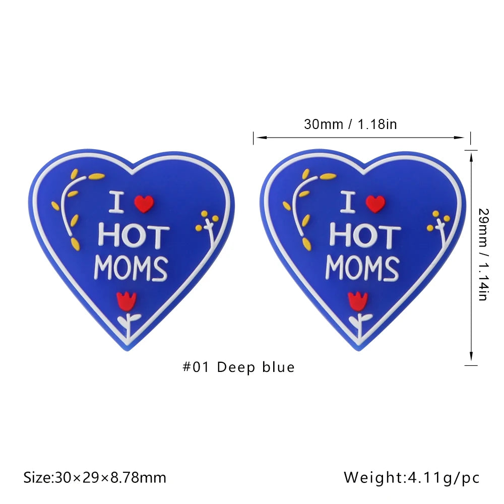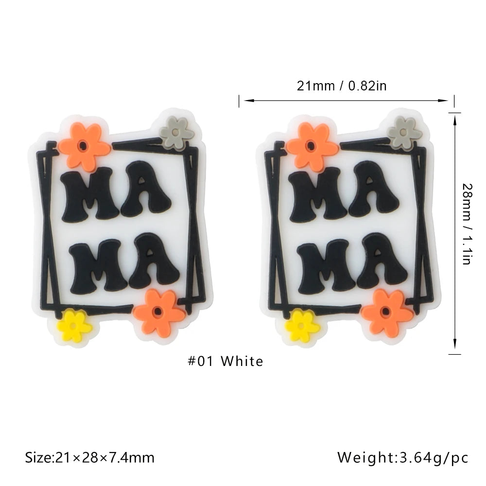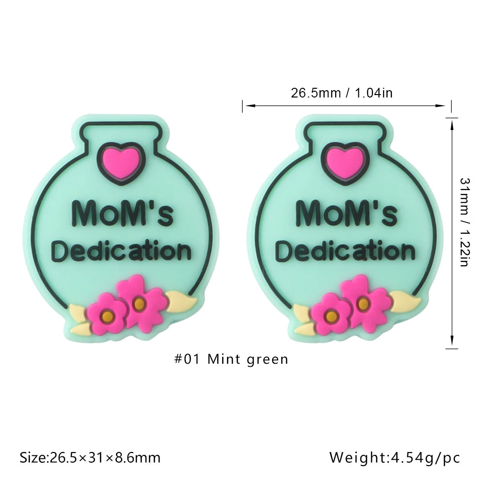 Lot de 5 ou 10 perles en silicone MOM pour la fabrication de bijoux, colliers, bracelets, accessoires de bijouterie