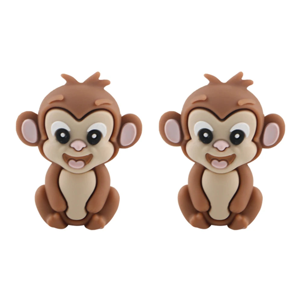 Lot de 5 ou 10 perles en silicone stéréoscopiques en forme de pingouin et de singe pour la fabrication de porte-clés et de bracelets faits à la main