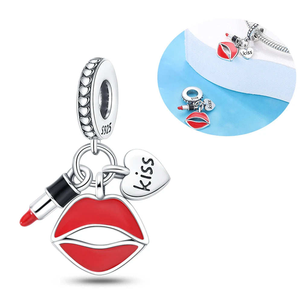 925 Silver Girl Lady Lipstick Makeup Charm Dangle Pendant Beads Fit Original Bangle Cosmetic Charms Bracelet DIY Making Jewelry