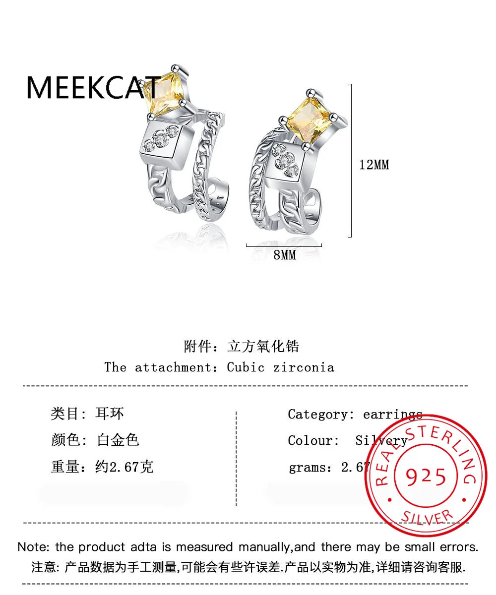 Boucle d'oreille à clip double couche carrée en argent sterling 925 avec citrine, pour femme et fille, sans piercing, bijou DS534