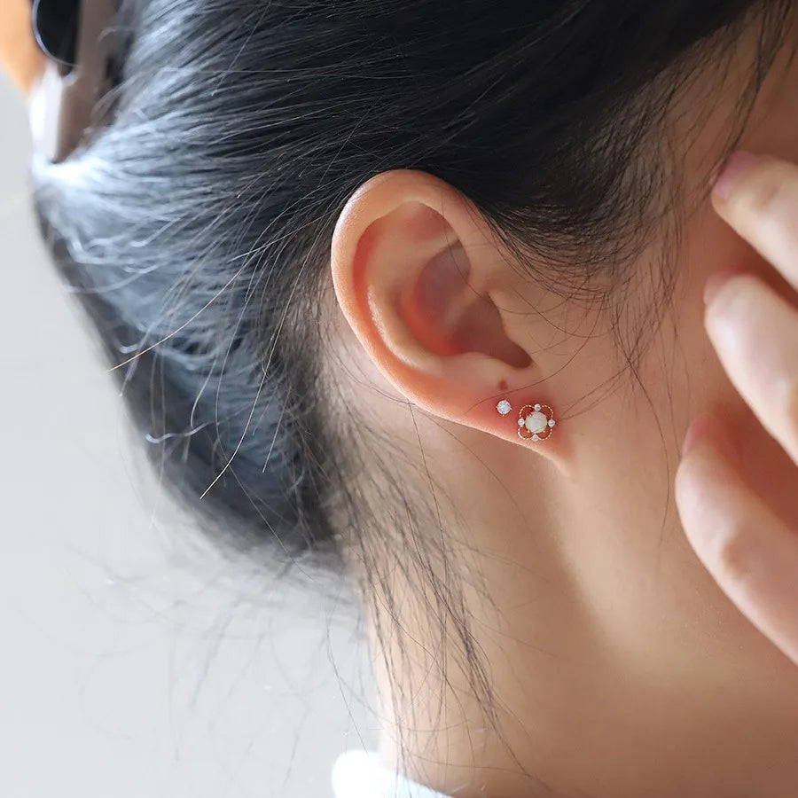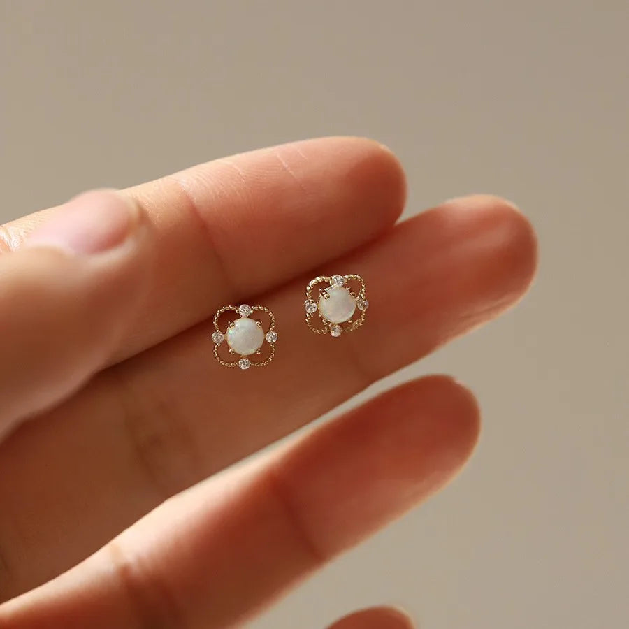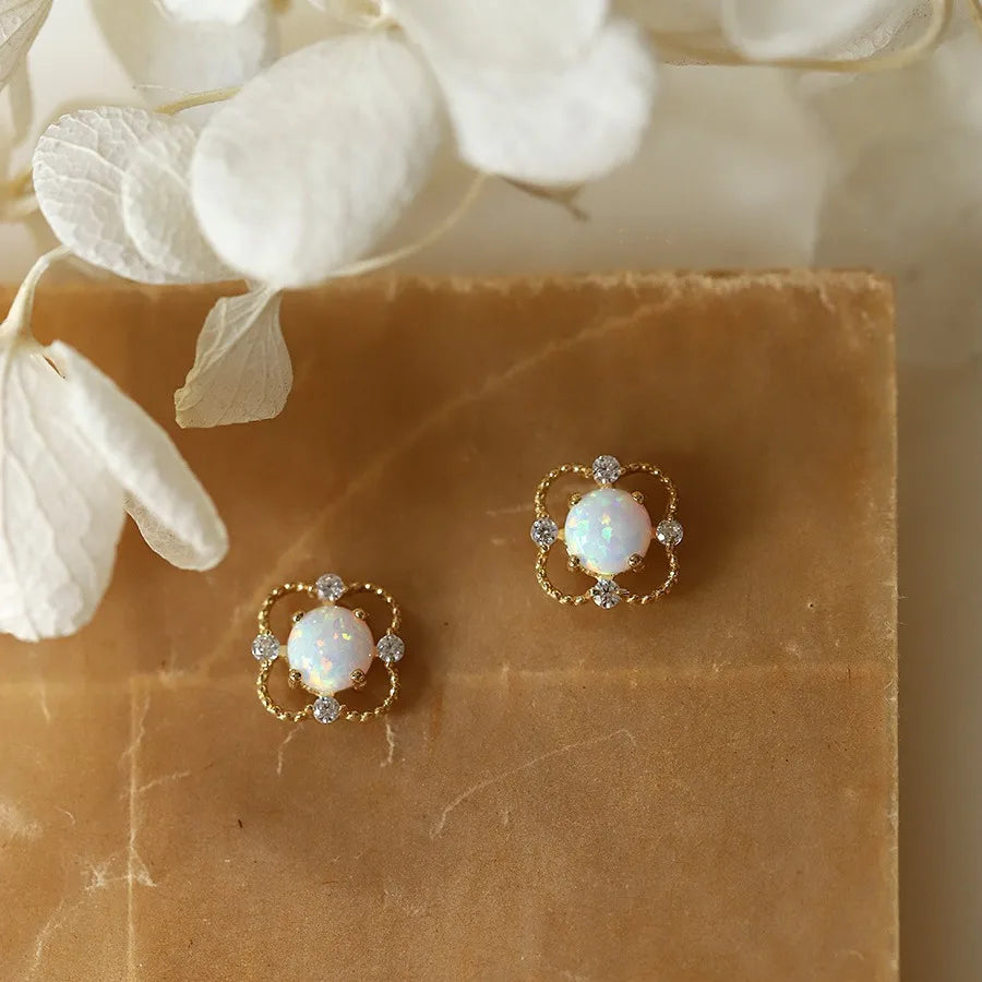 Boucles d'oreilles en argent sterling 925 plaqué or 14 carats pour femmes, boucles d'oreilles de luxe légères en forme de fleur d'opale et de zircone imitation française