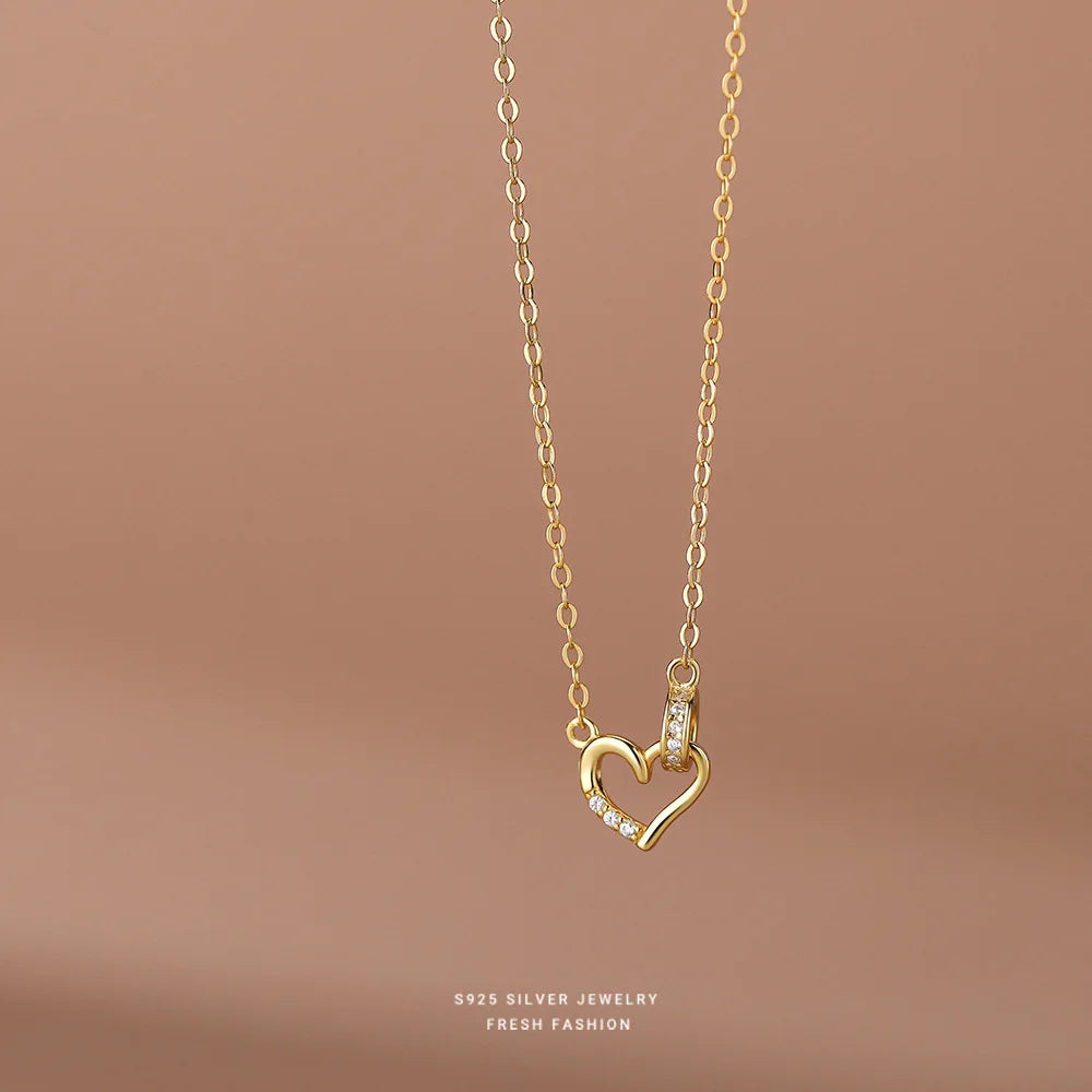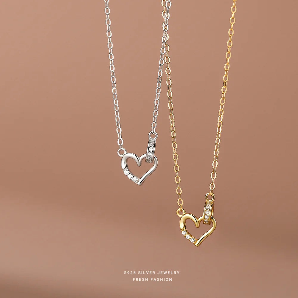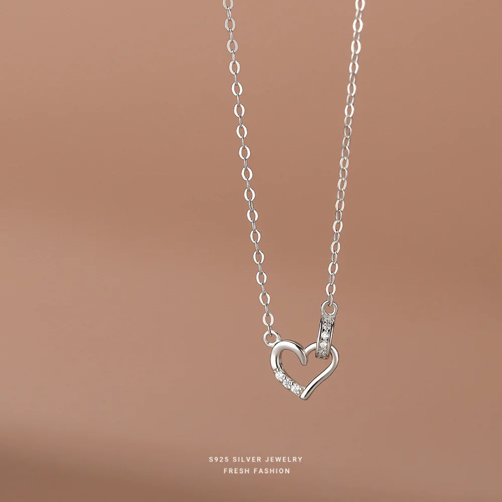 Collier avec pendentif cœur en argent sterling 925 et zircons coréens micro-sertis pour femme, bijou simple et luxueux