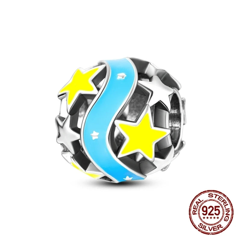 Breloque en argent sterling 925 représentant la lune, l'étoile, l'avion, l'espace, série bleue, compatible avec les bracelets Pandora originaux, bijoux à offrir