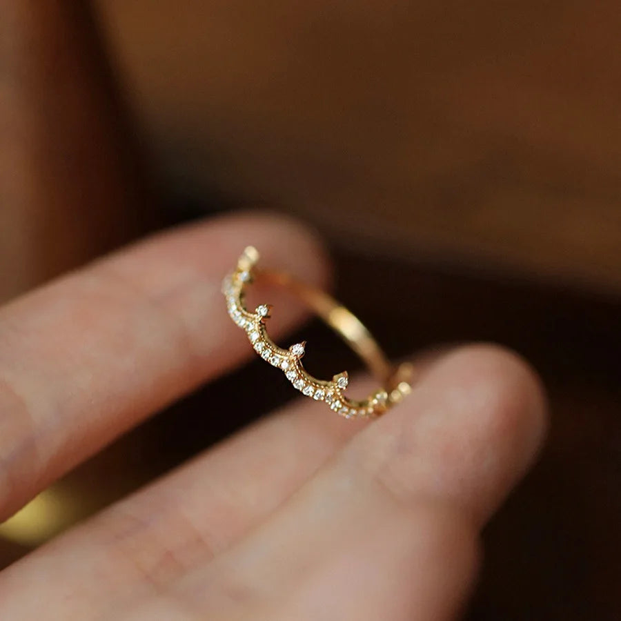 Bague couronne en argent sterling 925 plaqué or 18 carats et zircon pour femme, bijou de mariage léger et luxueux