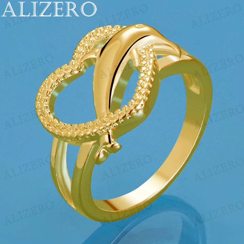 ALIZERO 18K Gold Dolphin Heart Rings For Women Wedding Engagement Band Banquet Party Gifts Fashion Charms Jewelry Accessories