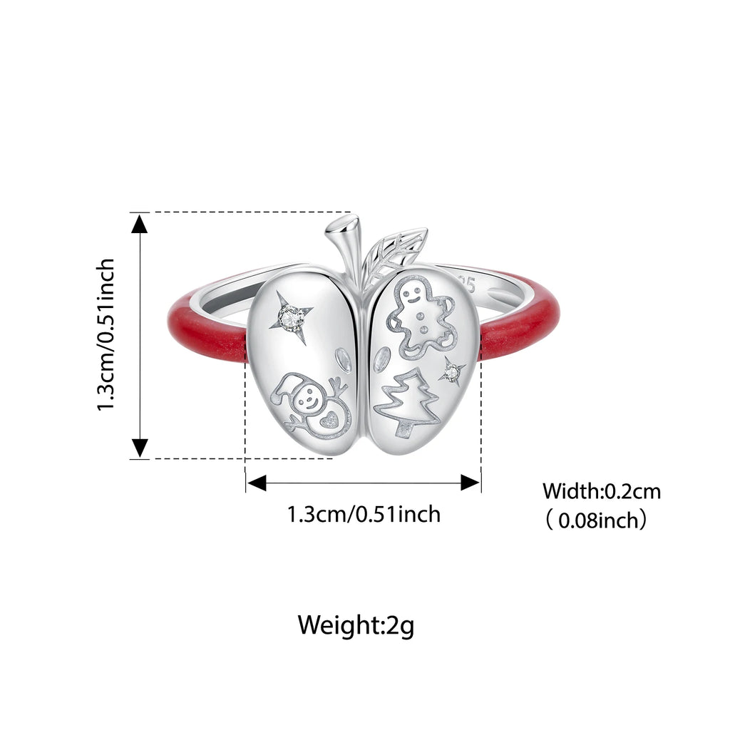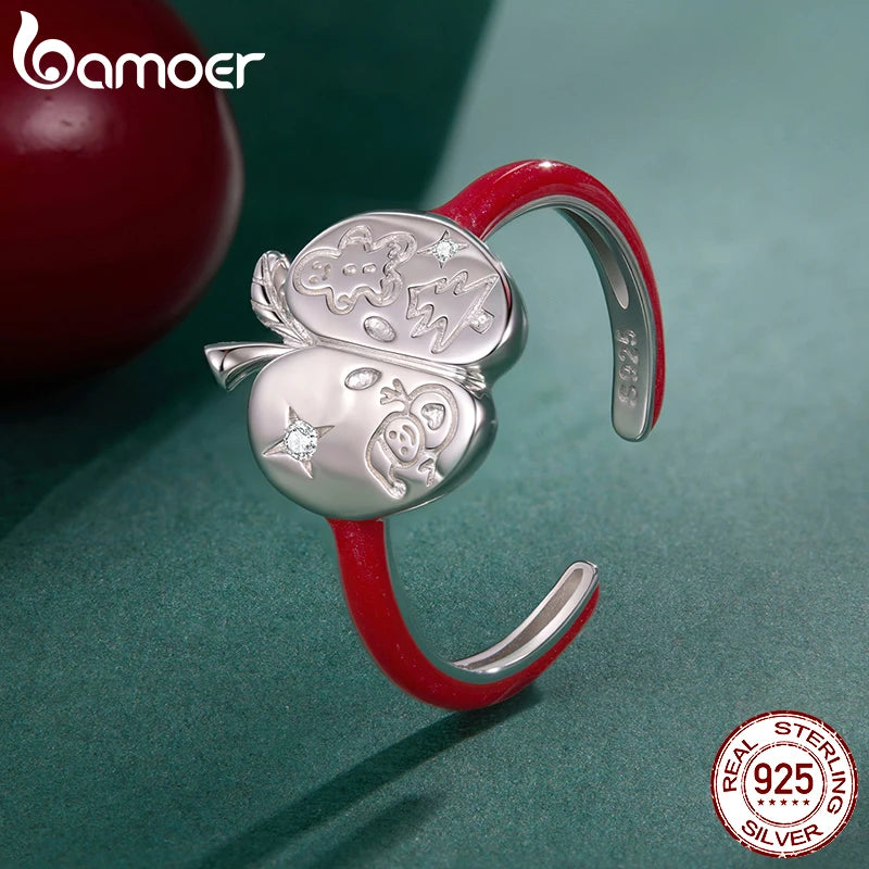 Bague ouverte Bamoer en argent sterling 925, motif sapin de Noël et bonhomme de neige, gravure ajustable, rouge, pour femmes et adolescentes, cadeau de Noël idéal