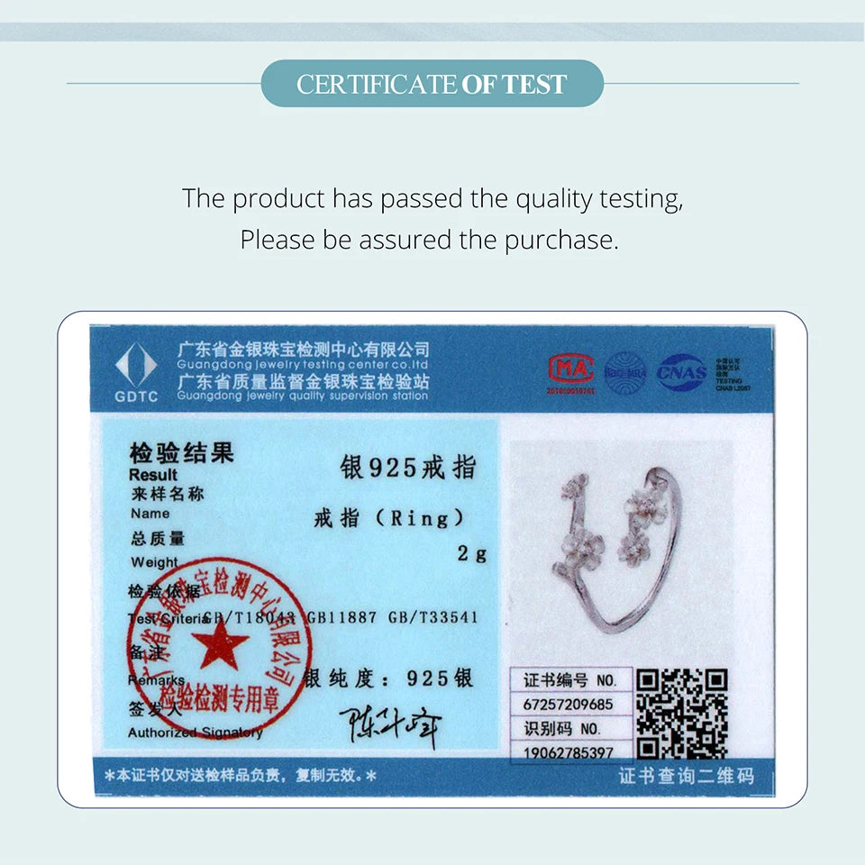 Bague ouverte BAMOER en argent sterling 925, motif fleur de prunier, bague ajustable, motif floral d'hiver, texture givrée, cadeau élégant pour femme