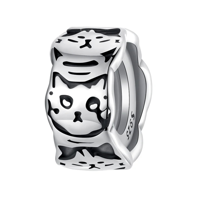 BAMOER Solid 925 Sterling Silver Cat Spacer Charm fit Original Bracelet DIY Jewelry Accessories bamoer Beads SCC3041