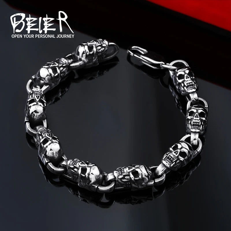 Bracelet en acier inoxydable 316L Beier Bracelet punk crâne pour homme largeur 10 mm Bijoux fantaisie LLBC8-023