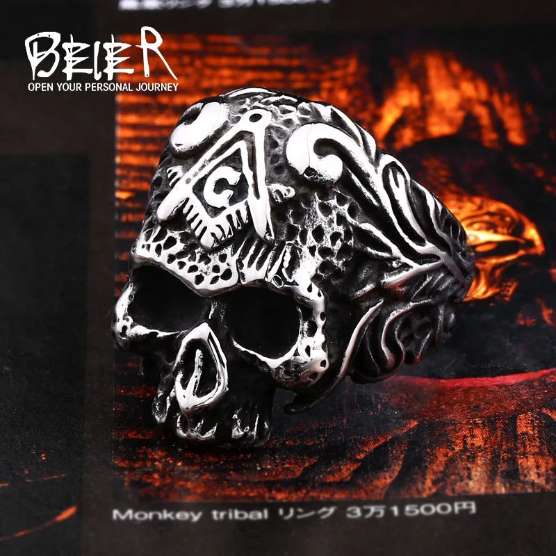 Beier Bague en acier inoxydable 316L style hip-hop en acier inoxydable avec tête de mort et titane pour homme, bijoux vintage punk à la mode LLBR8-683R