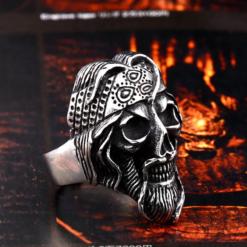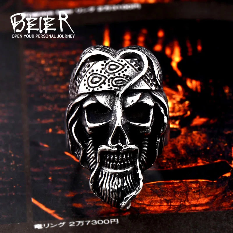 BEIER Bague en acier inoxydable 316L pour homme, bijou tendance, tête de mort, punk, prophète, turban, barbu, LLBR8-662R