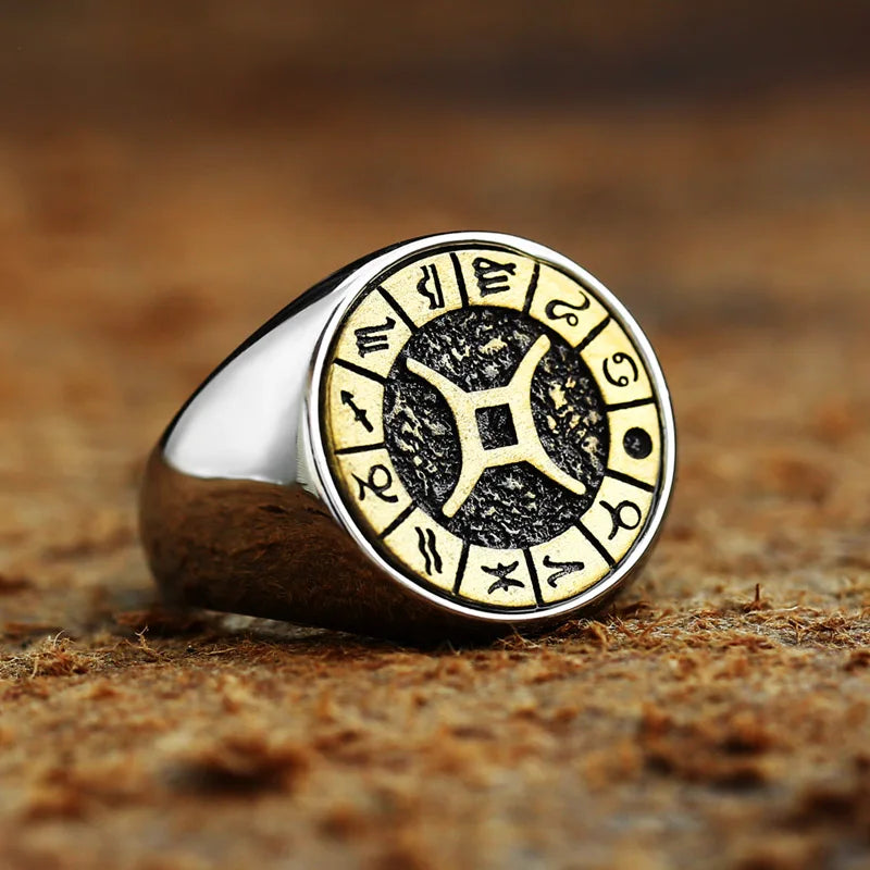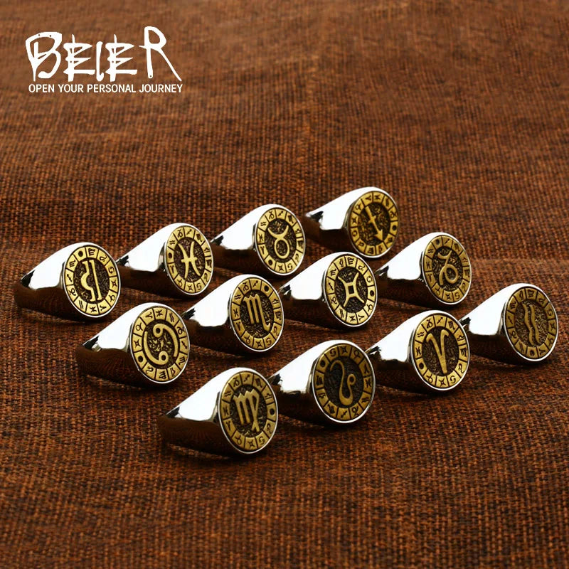 Beier New Style Bagues en acier inoxydable 316L 12 constellations signe du zodiaque Bijoux de mode vintage hautement polis