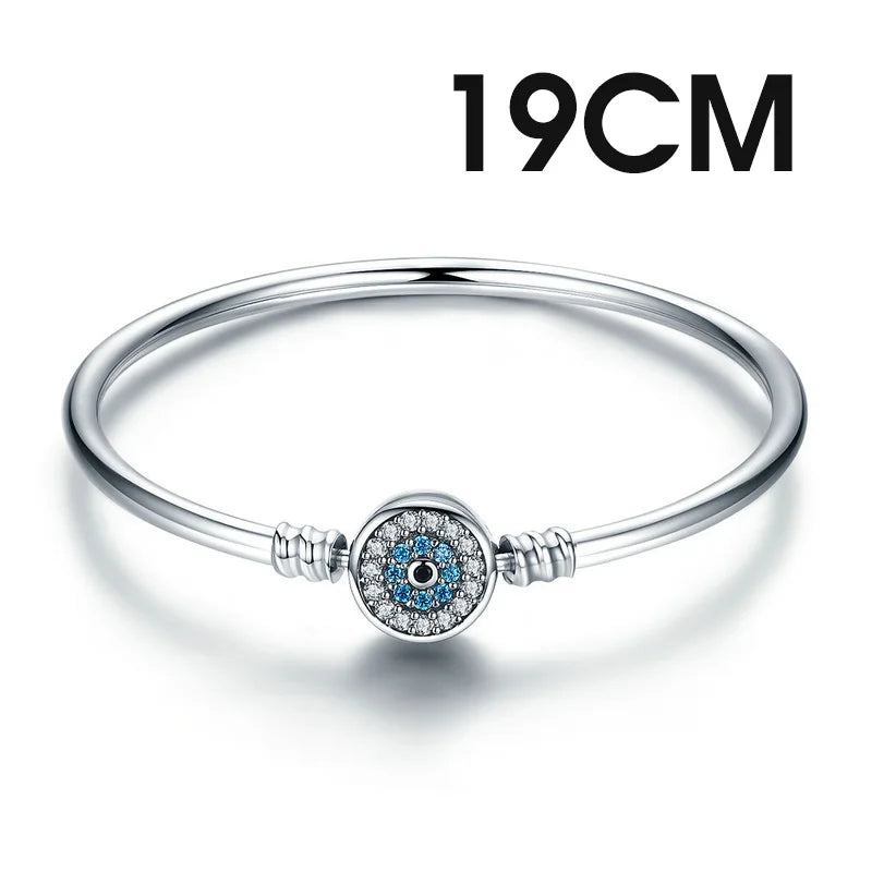 BISAER Bracelet en argent sterling 925 massif, maille serpent, zircon, bracelet et jonc avec breloque œil de démon bleu, tailles 17 à 21