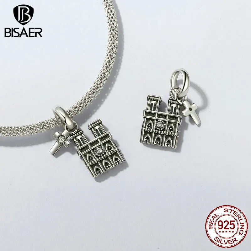 BISAER 100% 925 Argent Sterling Christ Rédempteur Charms Perles Big Ben Tour de Pise Pendentif Fit Femme Bracelet DIY Bijoux Fins
