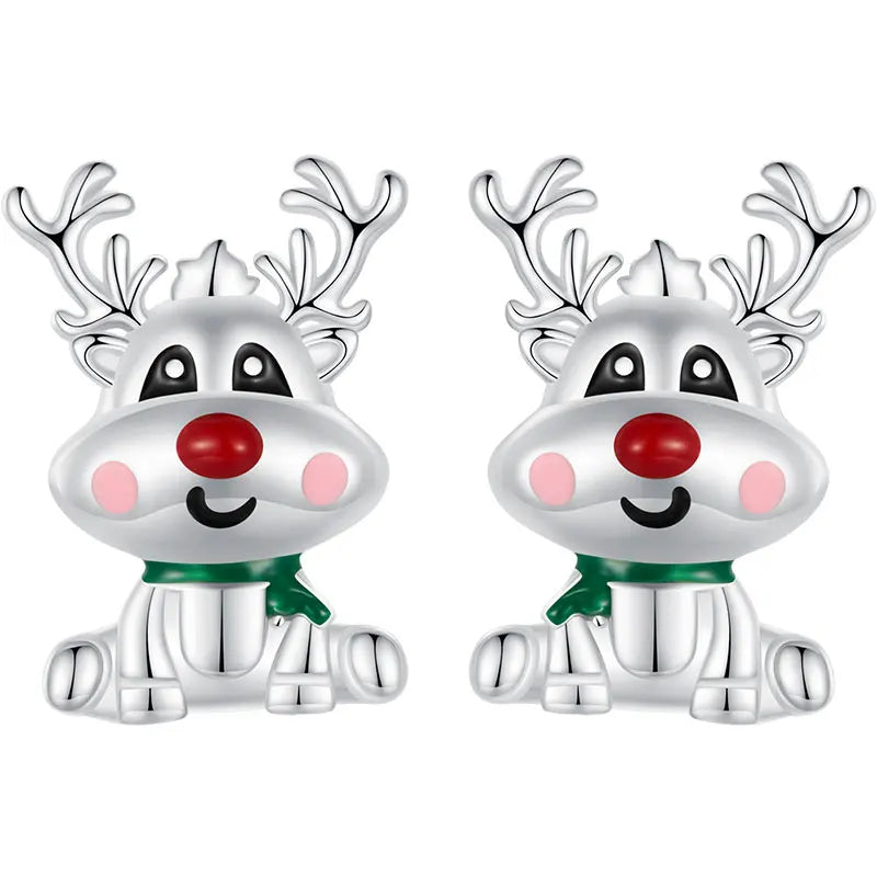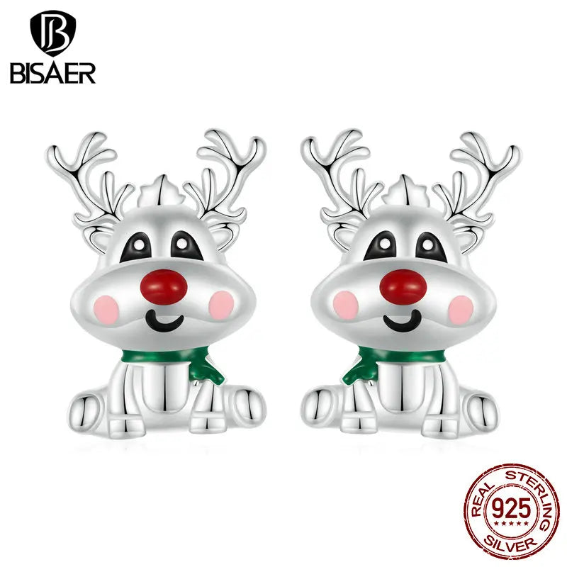 Boucles d'oreilles à tige en forme de renne de Noël en argent sterling 100 % 925 BISAER plaqué platine pour femme, bijoux fins pour fête de Noël