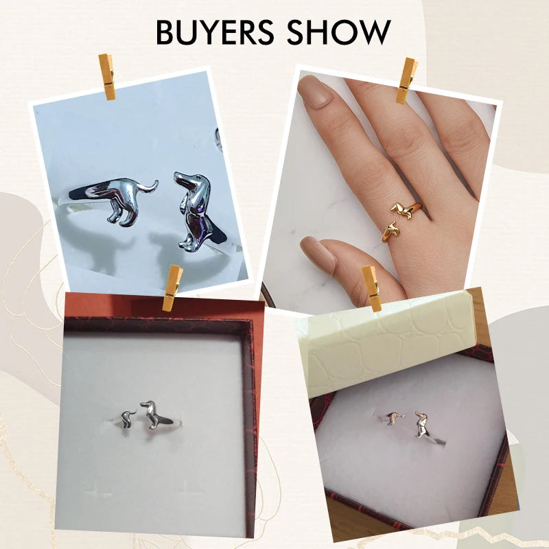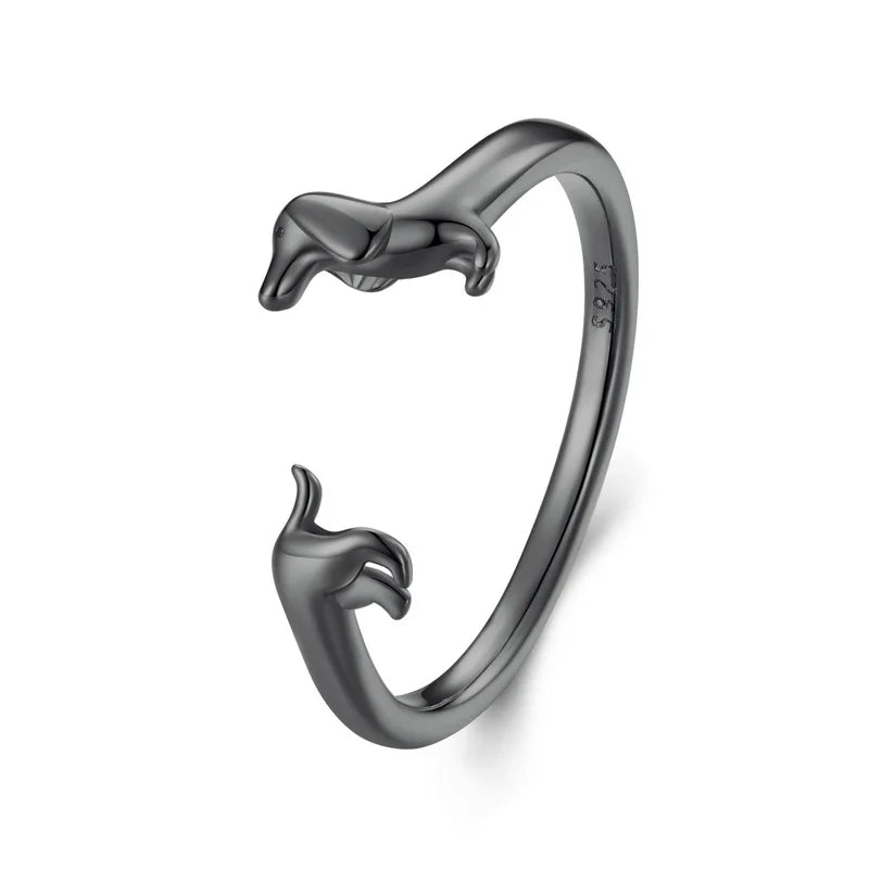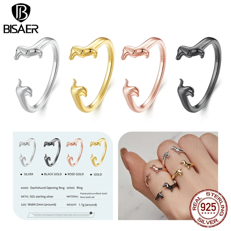 BISAER Bague en argent sterling 925 100 % plaqué or 14 carats pour femme avec motif teckel et anneau réglable pour animal de compagnie, bijoux tendance pour fête, 4 couleurs