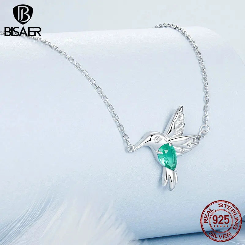 Collier pendentif colibri BISAER en argent sterling 925, chaîne ajustable plaquée or blanc, bijou raffiné pour femme, idéal pour les fêtes.