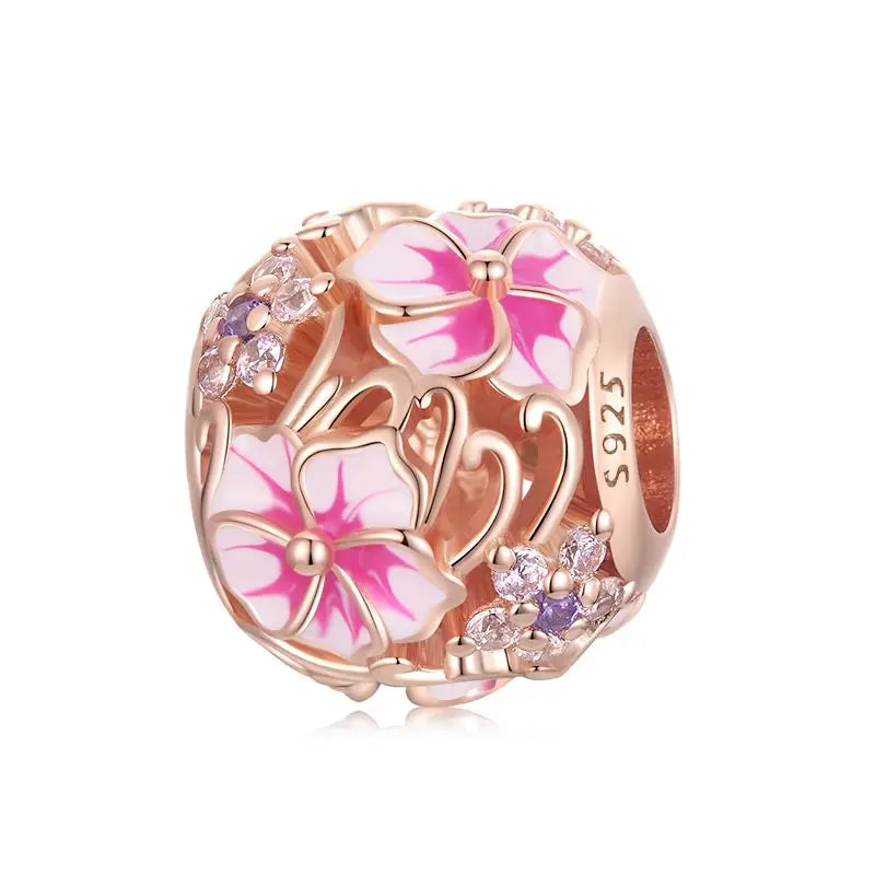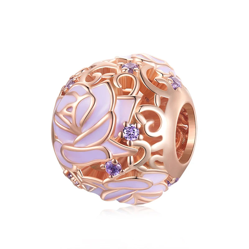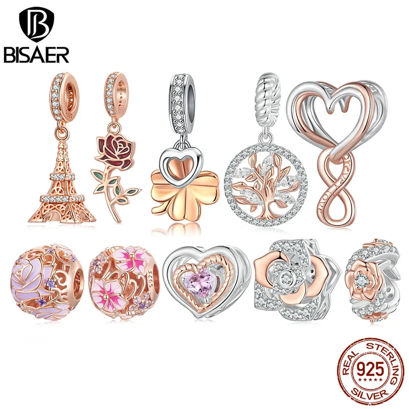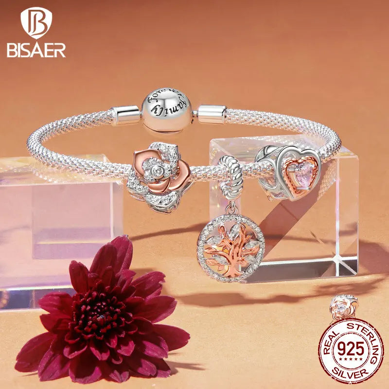 BISAER 100% 925 Argent Sterling Arbre de Vie Charm Perle Rose Entretoise Plaqué Or Rose Pendentif Fit Femmes Bracelet DIY Bijoux Fins