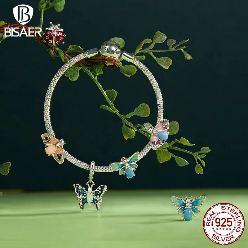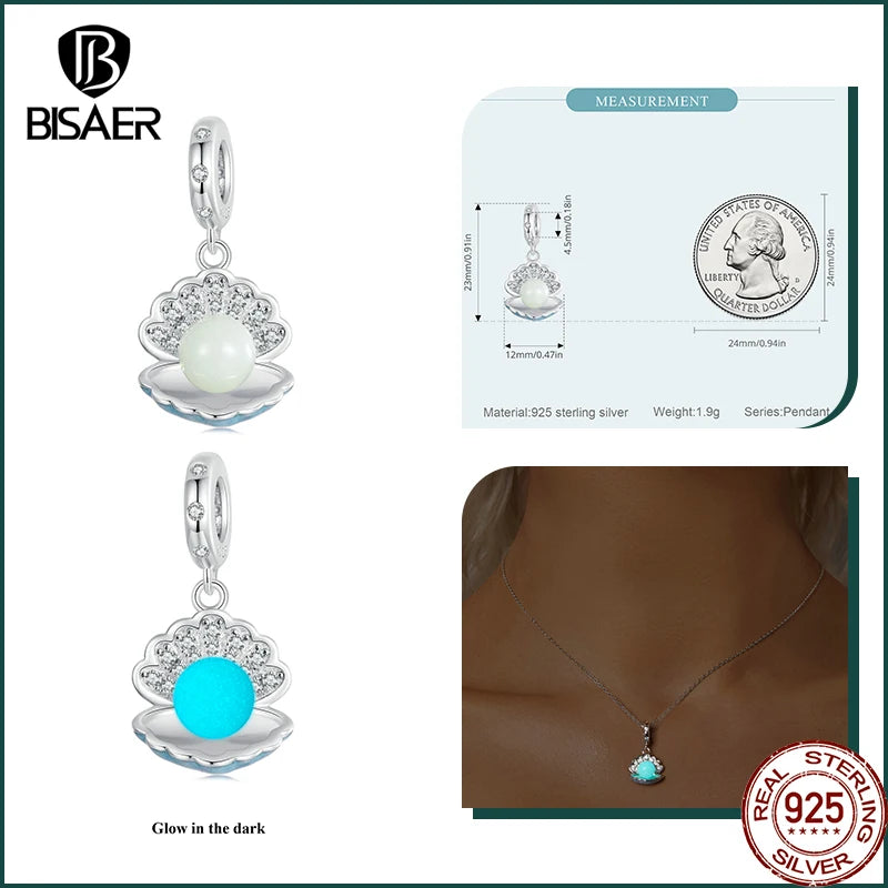 BISAER 925 Sterling Forever Luminous Star Wishing Bottle Charm Bead Moon Cat Owl Pendant Fit Women DIY Bracelet Fine Jewelry