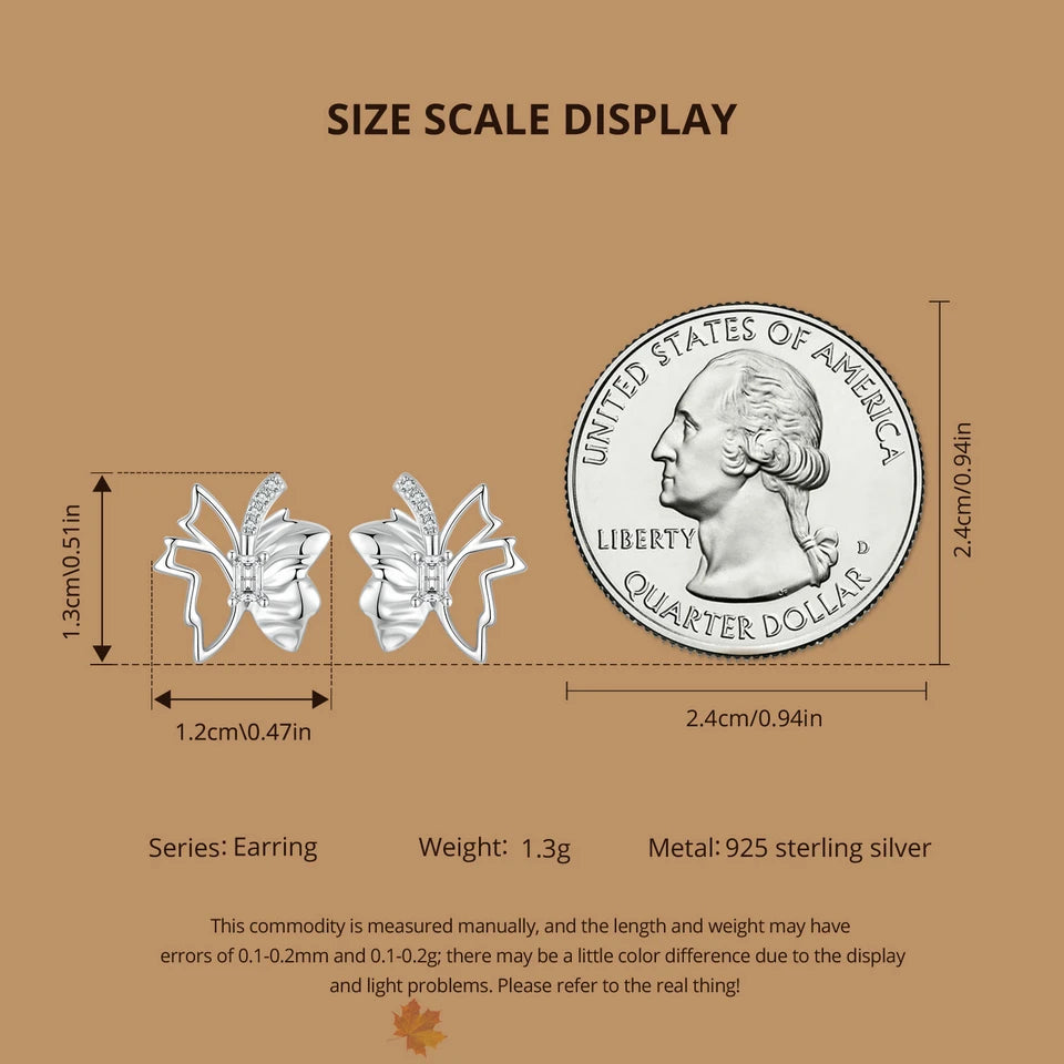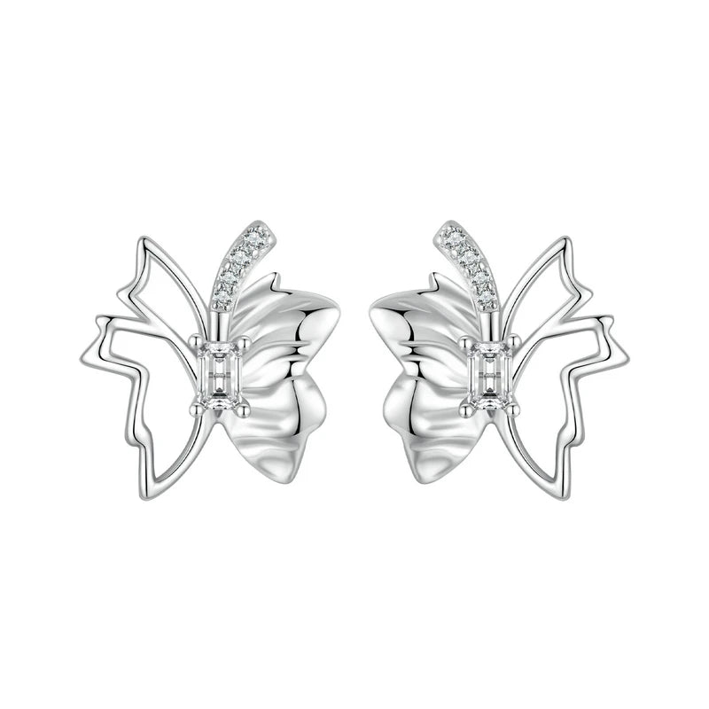 Boucles d'oreilles à tige en argent sterling 925 BISAER en forme de feuille d'automne et de papillon - Simple - Plaqué or blanc - Pour femme - Bijoux fins de fête