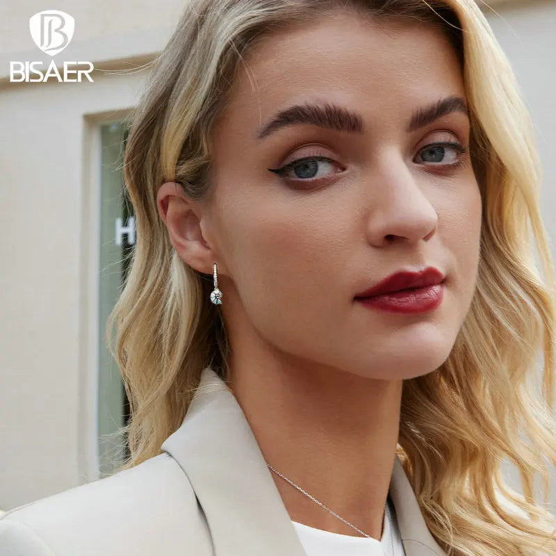 BISAER 925 Sterling Silver Blue Seashell Hoop Earrings Bule Enamel Buckles Plated White Gold For Woman Fine Jewelry Holiday Gift