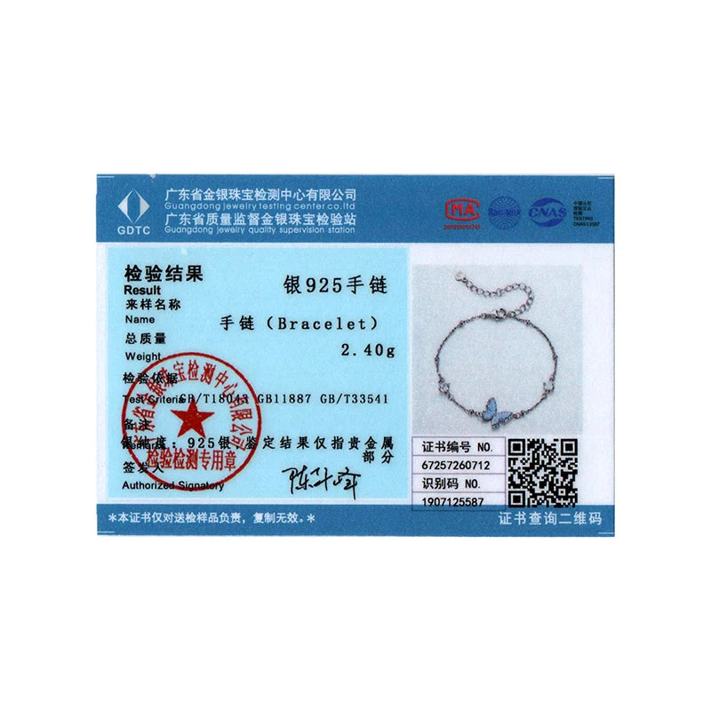 BISAER 925 Sterling Silver Bule Butterfly Charm Bracelet Sparkling Zircon Adjustable Chain Bangle for Women Party Fine Jewelry