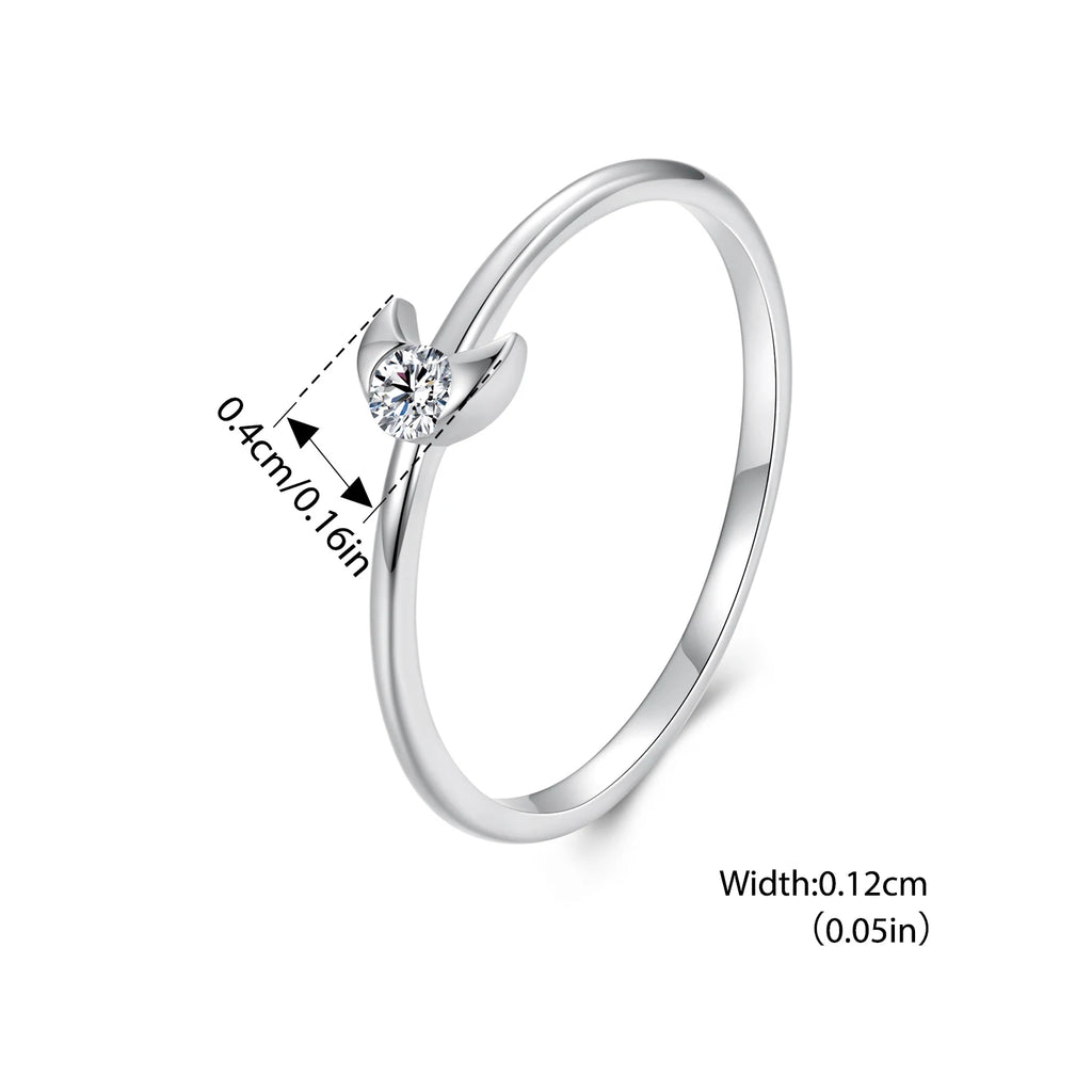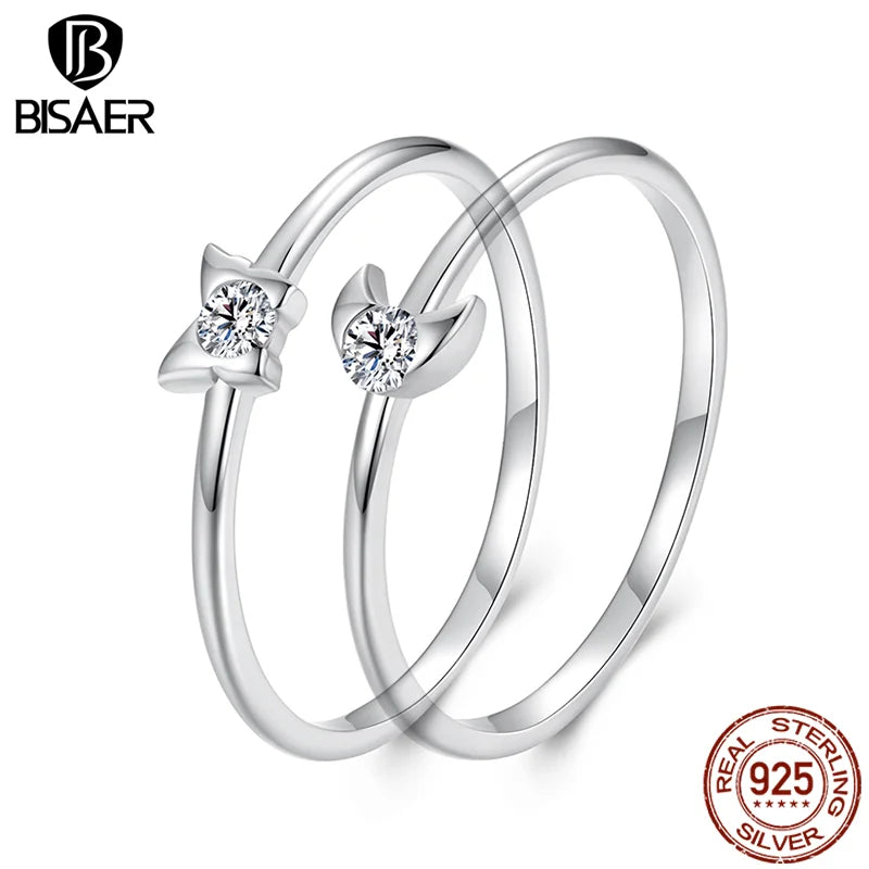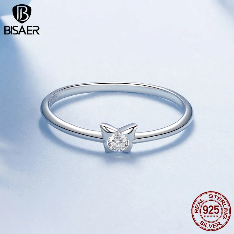 Bague papillon en argent sterling 925 BISAER avec bande de zircon scintillante en forme de lune plaquée or blanc pour femme, bijoux fins pour fête, mariage, cadeau