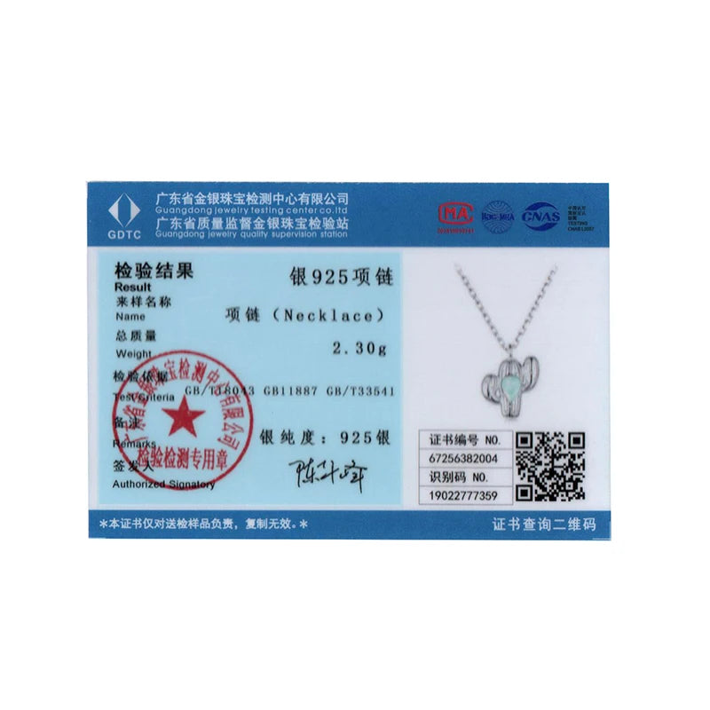 BISAER 925 Sterling Silver Cactus Pendant Necklace Water-drop Opal Chain Plated White Gold For Women Party Fine Jewelry ECN536