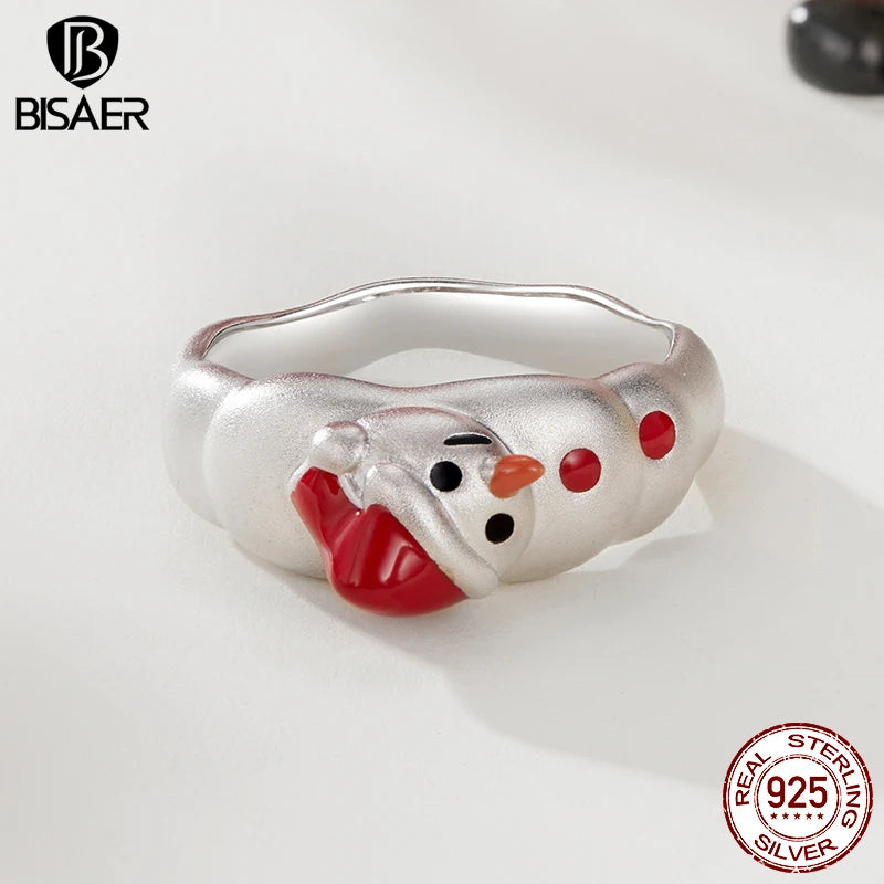Bague de Noël en argent sterling 925 BISAER avec émail et bande plaquée or blanc pour femme, bijou fin de fête, cadeau de vacances