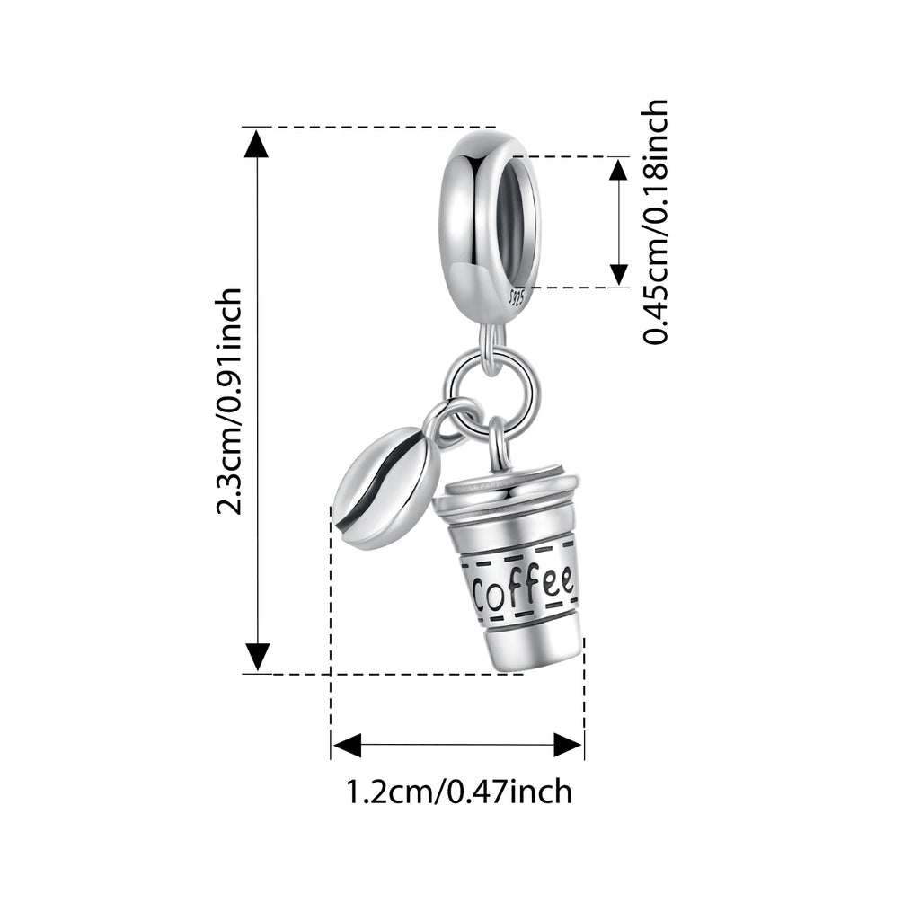 BISAER 925 Sterling Silver Coffee Cup Charm Bead Cafe Coffee Bean Pizza Pendant For Women DIY Bracelet & Necklace Fine Jewelry