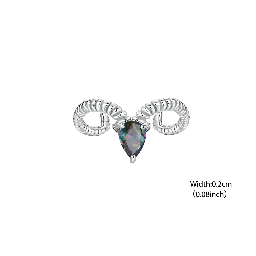 BISAER 925 Sterling Silver Constellation Open Ring Aries Pisces Sagittarius Cancer Scorpio Band for Women Party Fine Jewelry