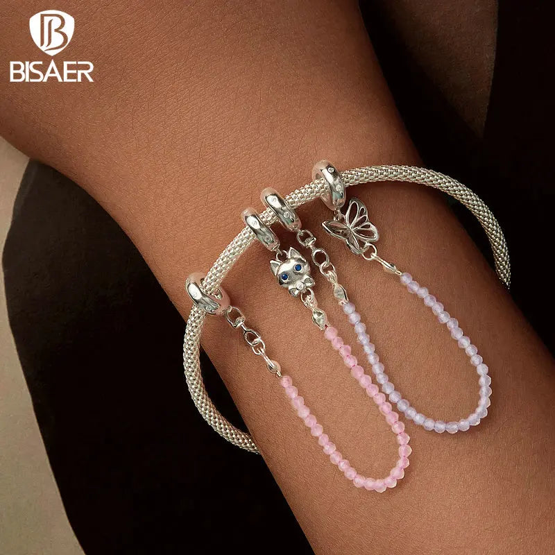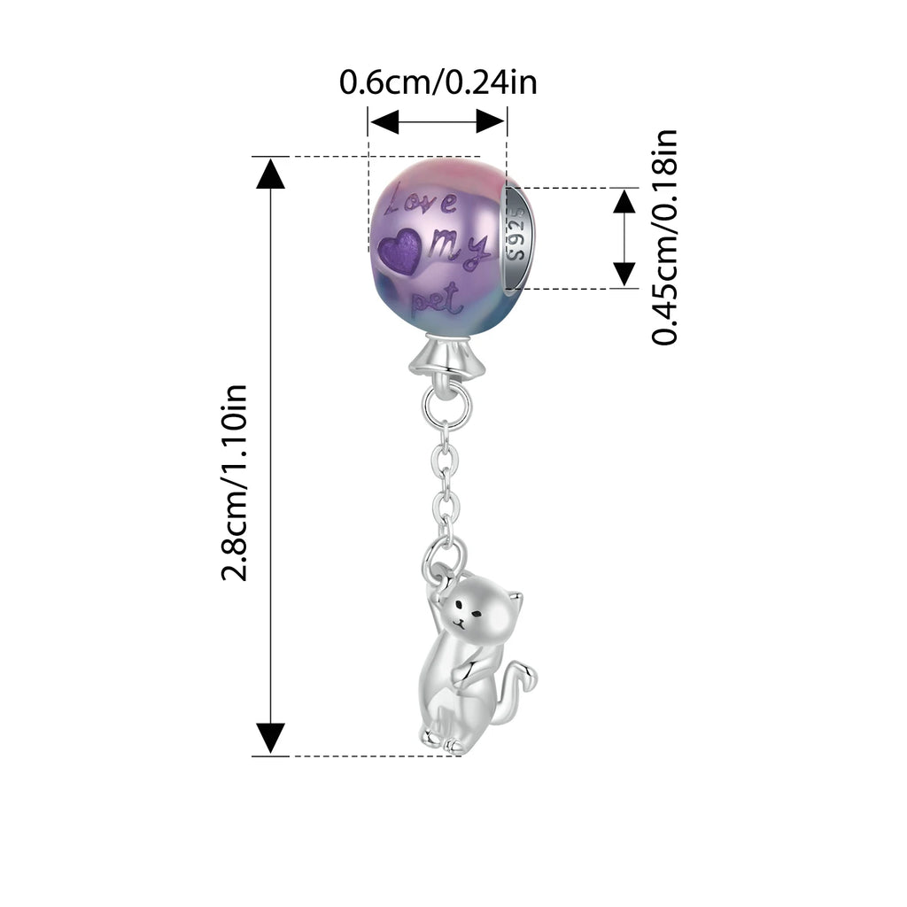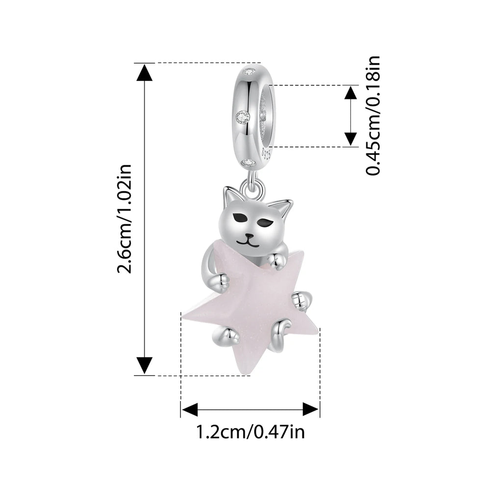 BISAER Pendentif en forme d'étoile en forme de chat mignon en argent sterling 925, breloques en forme de ballon volant, pattes de chat, perles adaptées aux bracelets à faire soi-même pour femme, bijoux fins