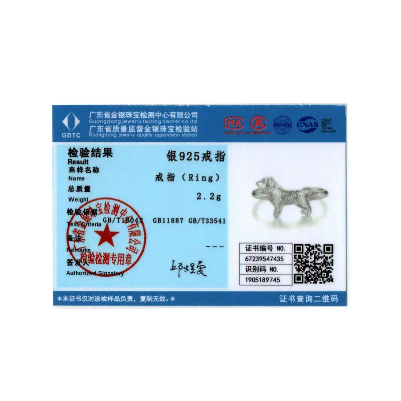 BISAER 925 Sterling Silver Cute Golden Retriever Open Ring Pet Dog Band Plated White Gold for Women Party Original Fine Jewelry