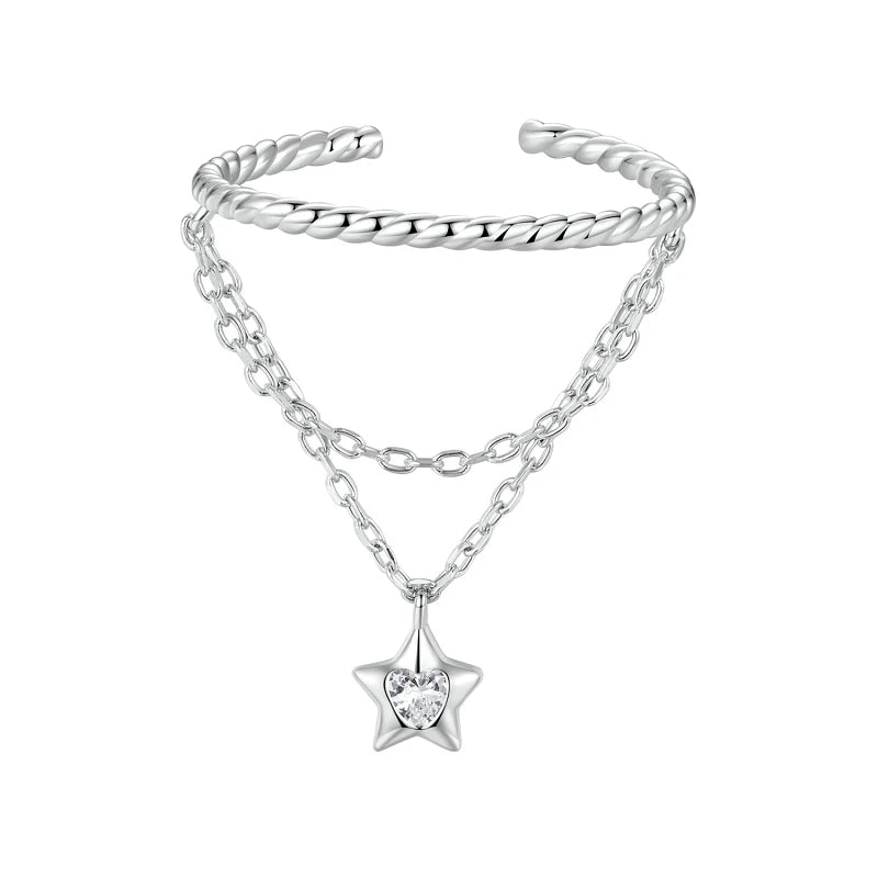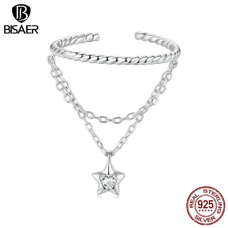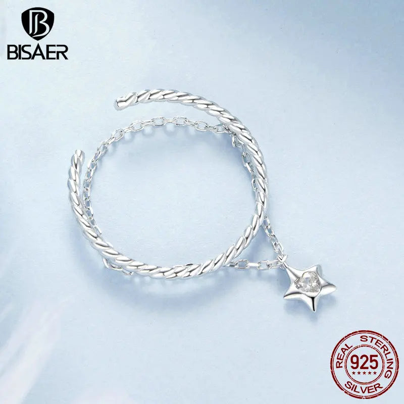 BISAER Bague ouverte en argent sterling 925 avec étoile dansante multicouche réglable plaquée or blanc pour femme