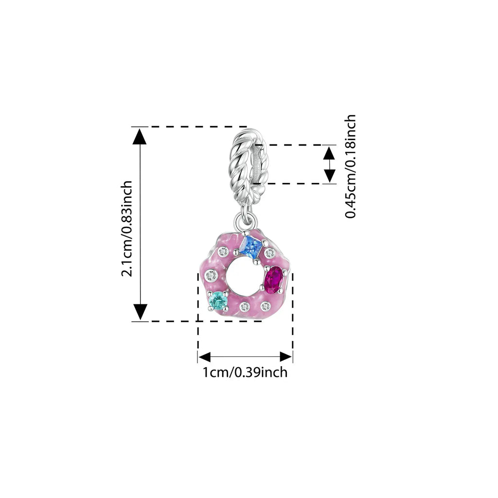 BISAER 925 Sterling Silver Donut Pendant Sweet Candy Coffee Summer Drinks Charm Bead for Women DIY Bracelet Fine Jewelry Gift