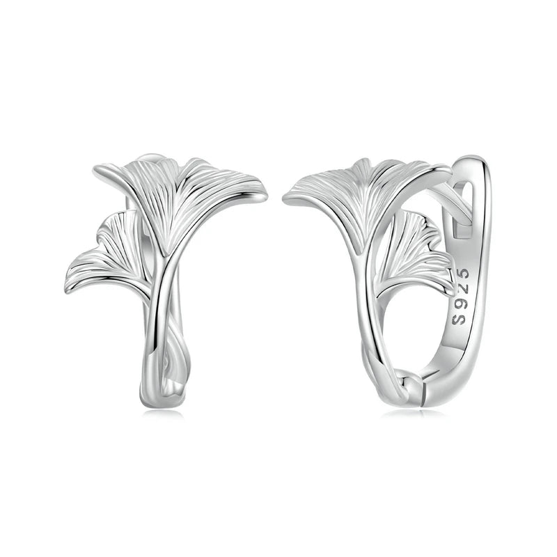 Boucles d'oreilles créoles en argent sterling 925 en forme de feuille de ginkgo plaqué or blanc pour fille, bijoux de mariage romantique, cadeau d'automne